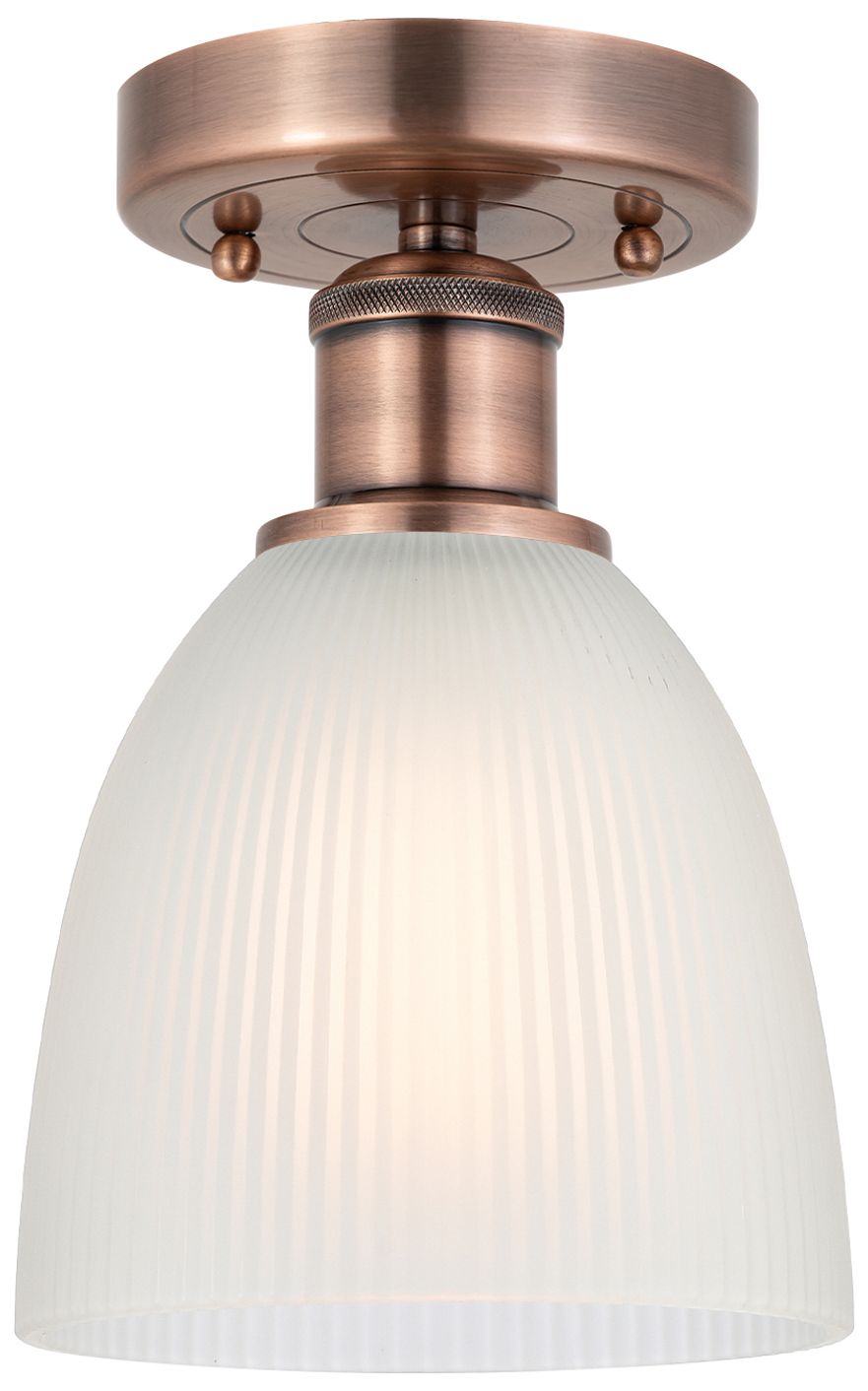 Castile 6" Wide Antique Copper Flush Mount With White Glass Shade