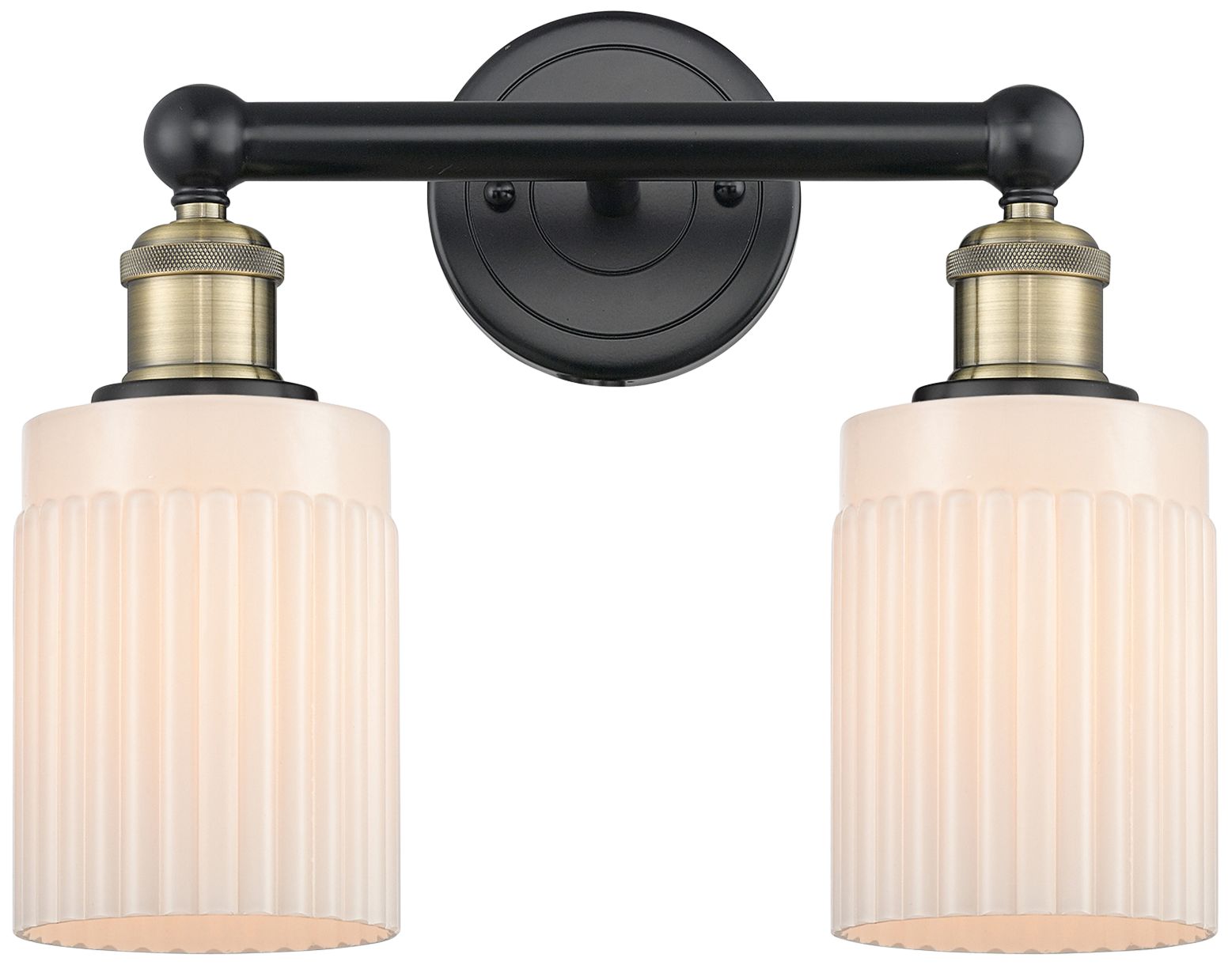 Hadley 13.5"W 2 Light Black Antique Brass Bath Light With White Shade