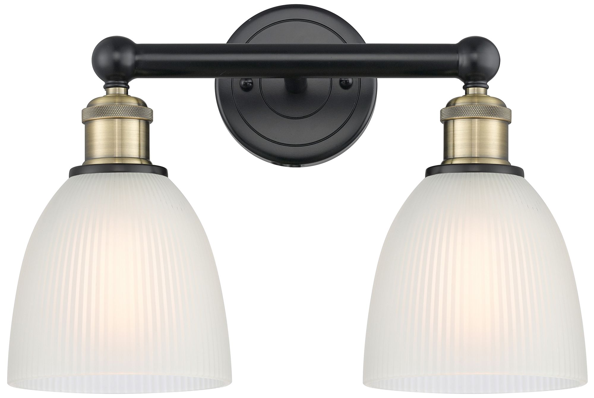 Castile 15"W 2 Light Black Antique Brass Bath Vanity Light With White