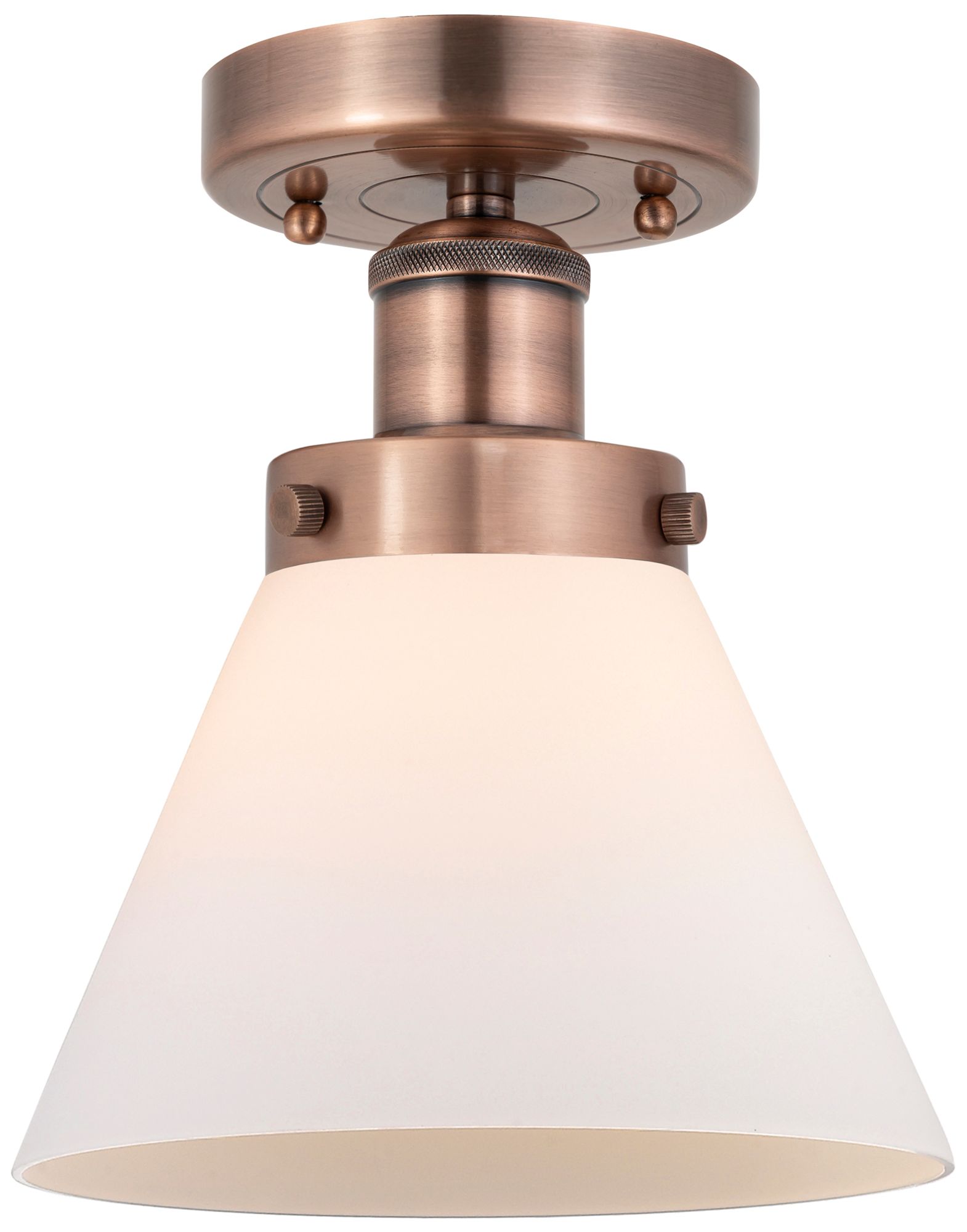 Cone 7.75"W Antique Copper Semi.Flush Mount With Matte White Glass Sha