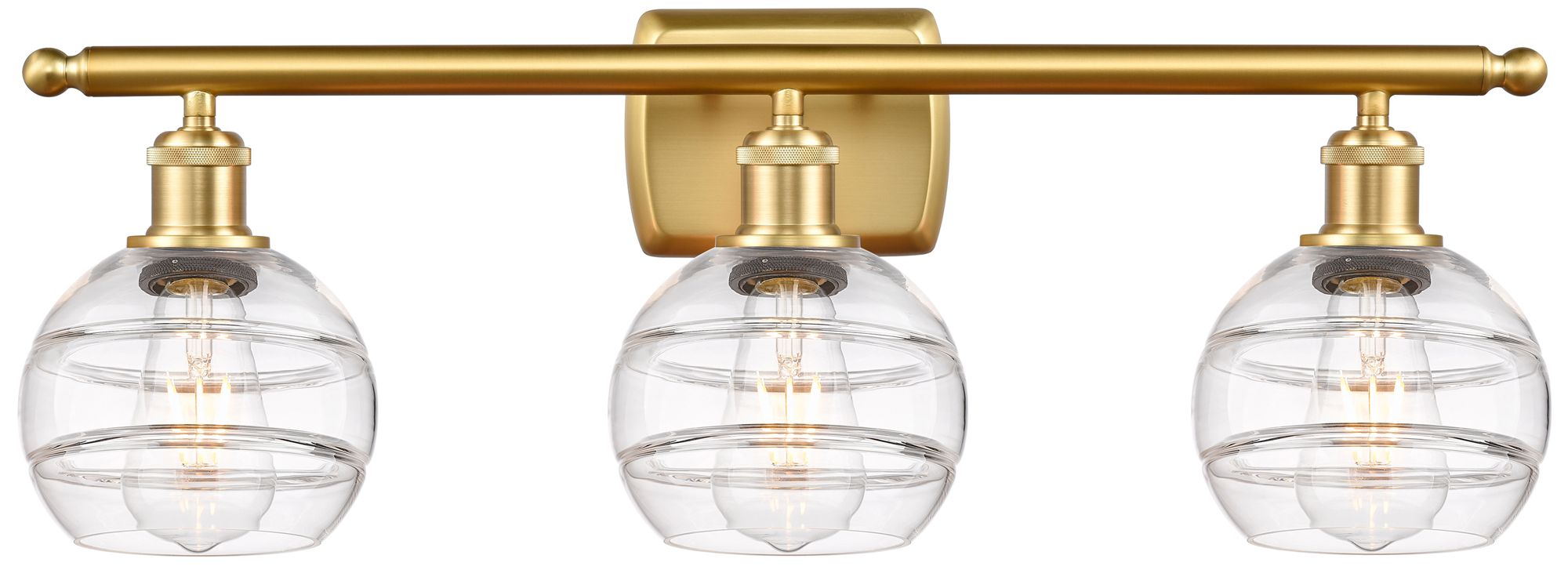 Ballston Rochester 25.88"W 3 Light Satin Gold Bath Light w/ 6" Cl