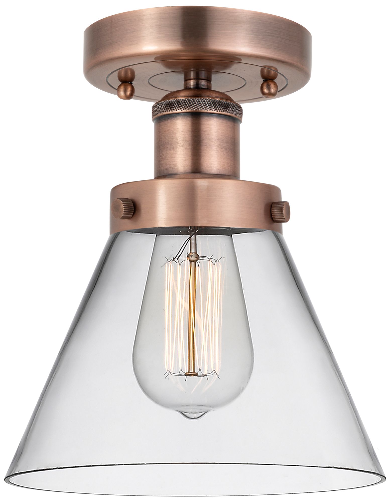 Cone 7.75" Wide Antique Copper Semi.Flush Mount With Clear Glass Shade