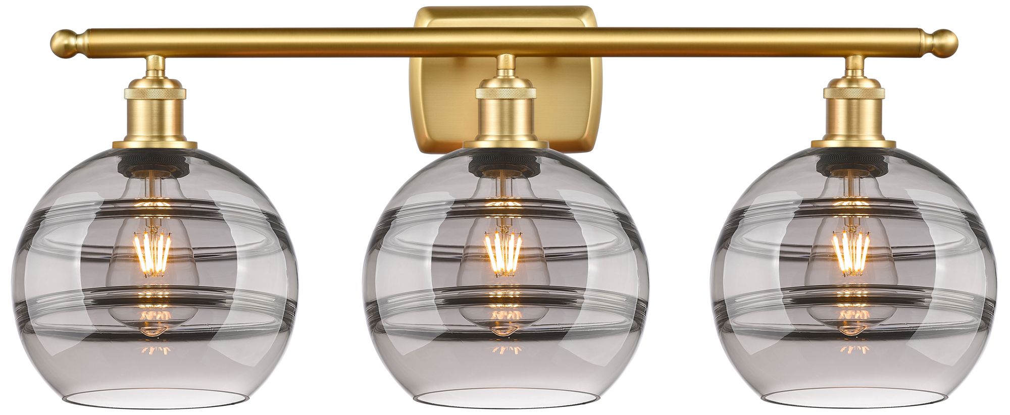 Ballston Rochester 28"W 3 Light Gold Bath Light w/ 8" Light Smoke