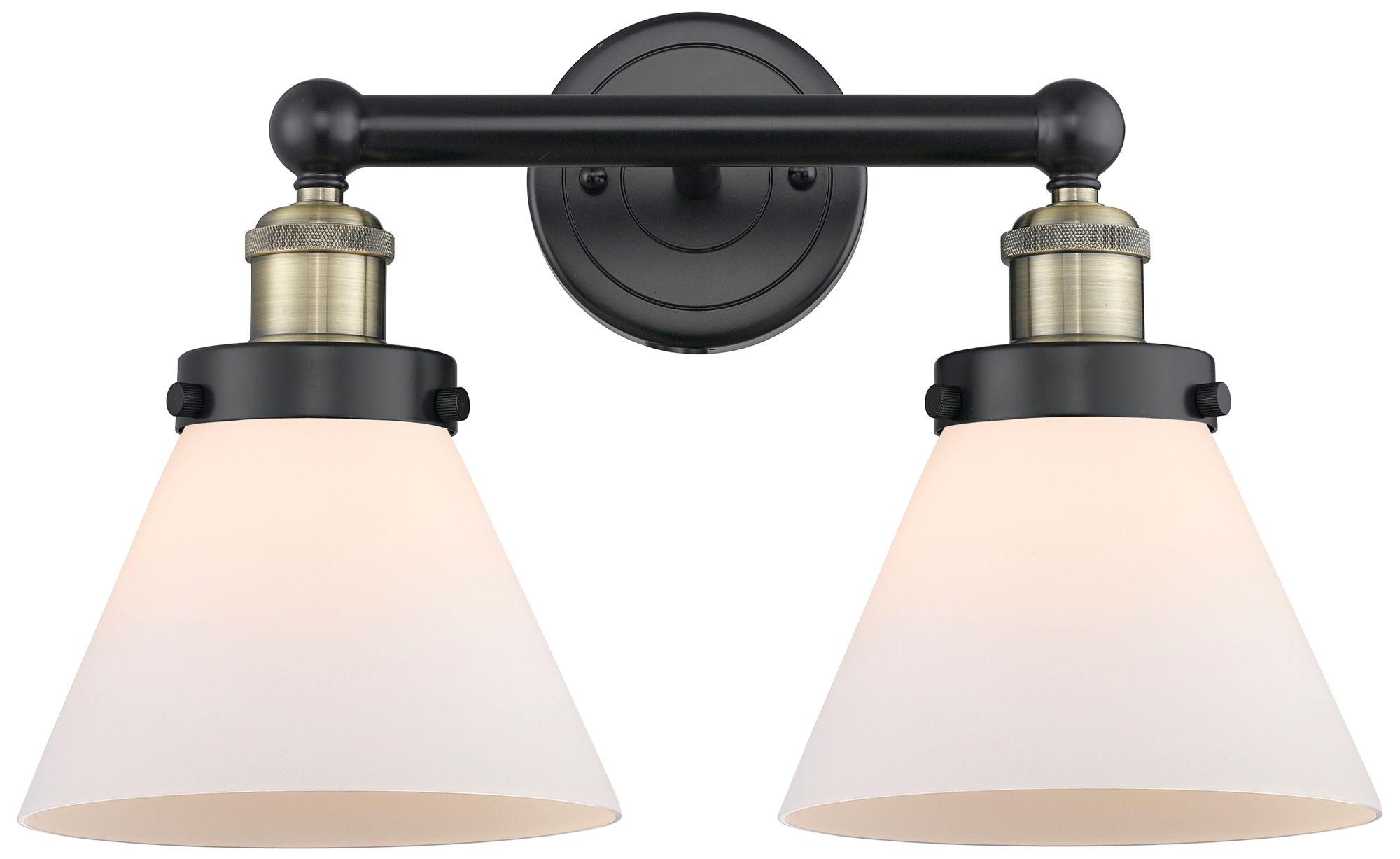 Edison Cone 16.75"W 2 Light Black Antique Brass Bath Light With White