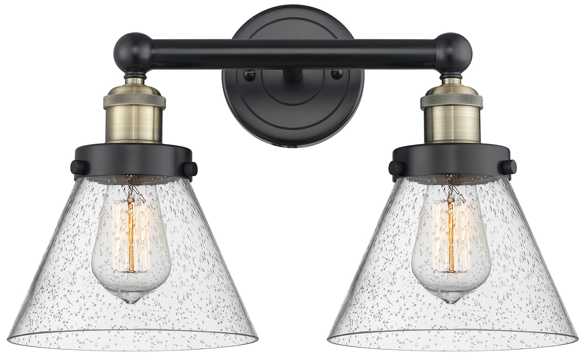Edison Cone 15.5"W 2 Light Black Antique Brass Bath Light With Seedy S