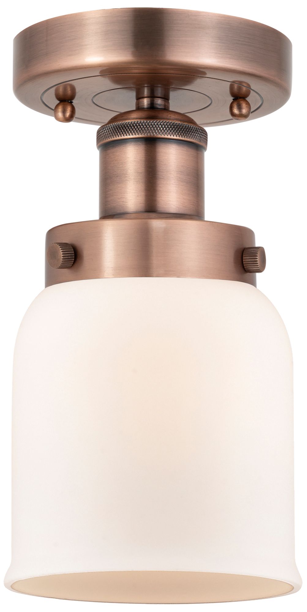 Bell 5" Wide Antique Copper Semi.Flush Mount With Matte White Glass Sh