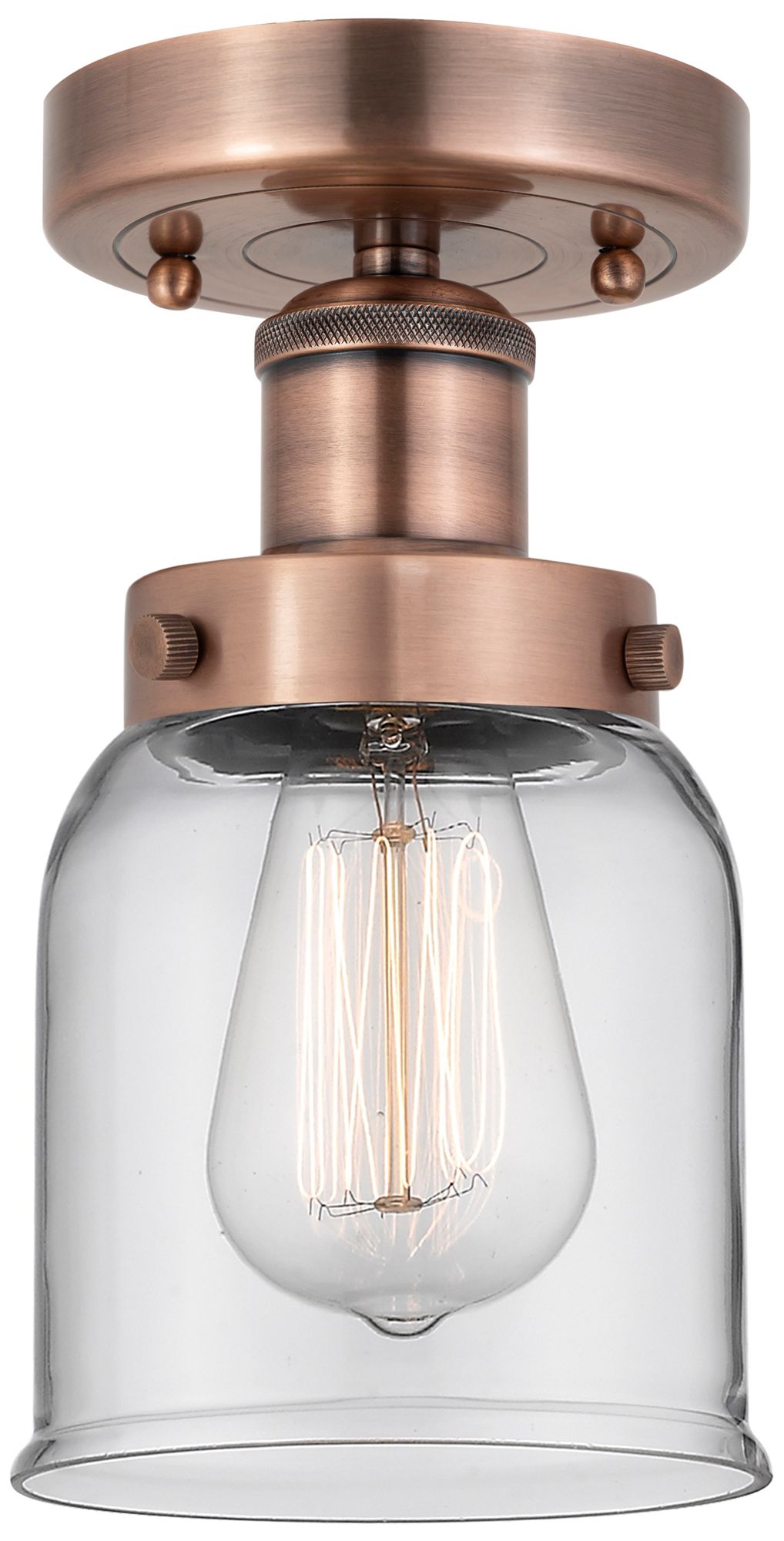 Bell 5" Wide Antique Copper Semi.Flush Mount With Clear Glass Shade