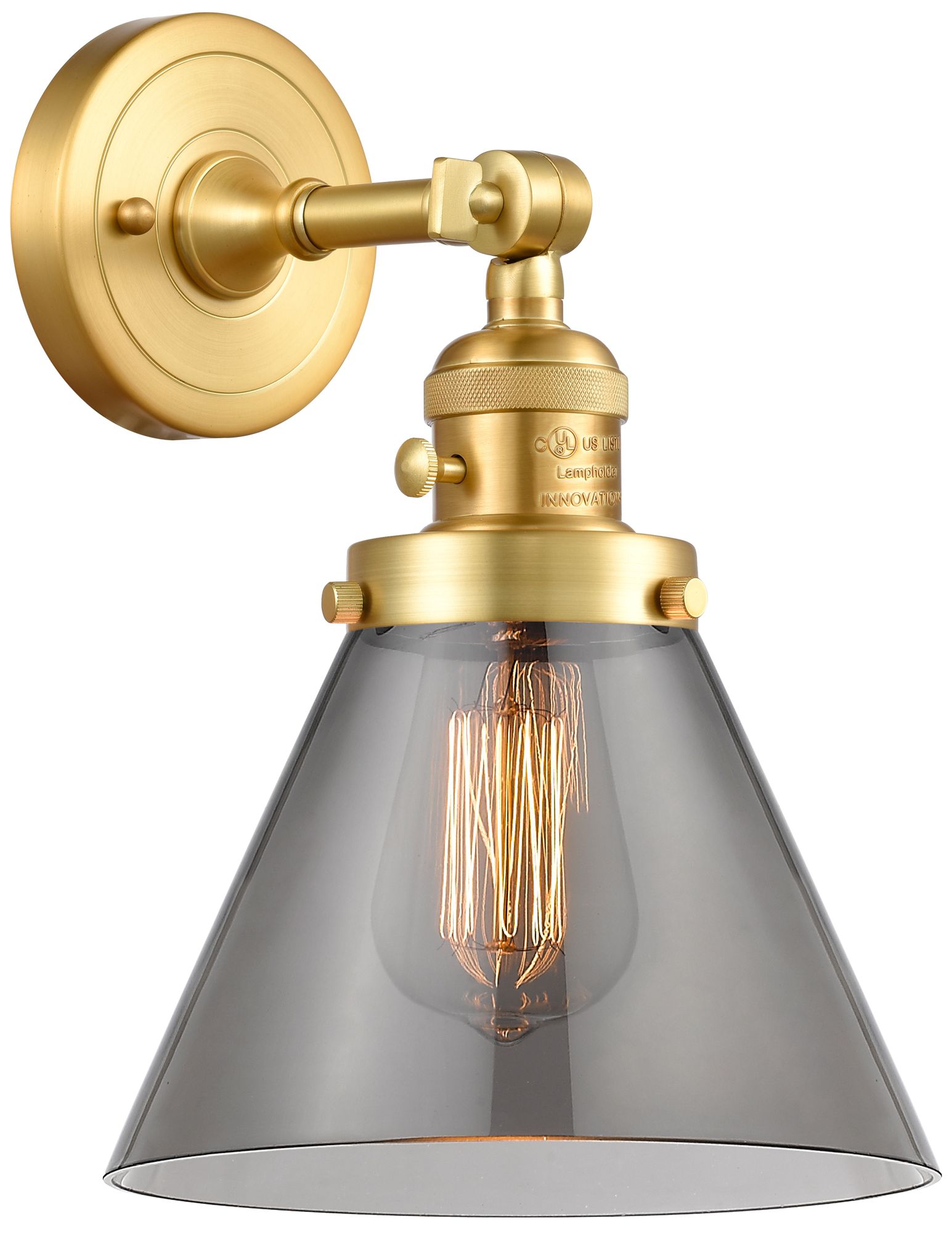 Cone 8" Satin Gold Sconce w/ Plated Smoke Shade