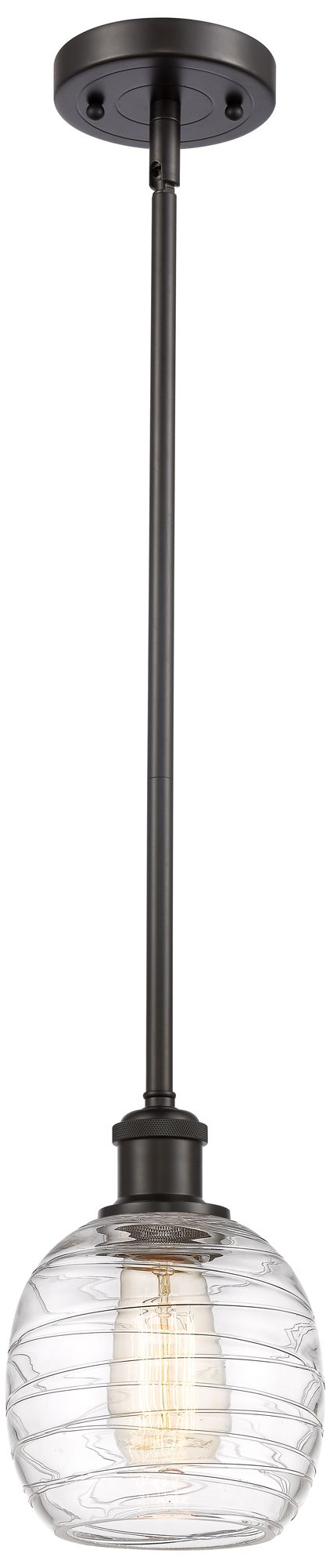 Belfast 6" Wide Bronze Stem Hung Mini Pendant w/ Deco Swirl Shade