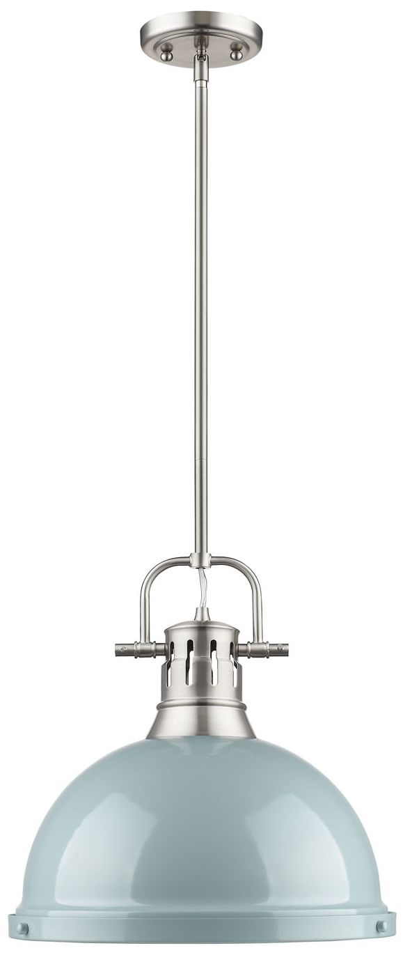 Duncan 14" Wide 1-Light Pendant with Rods in Pewter with Seafoam
