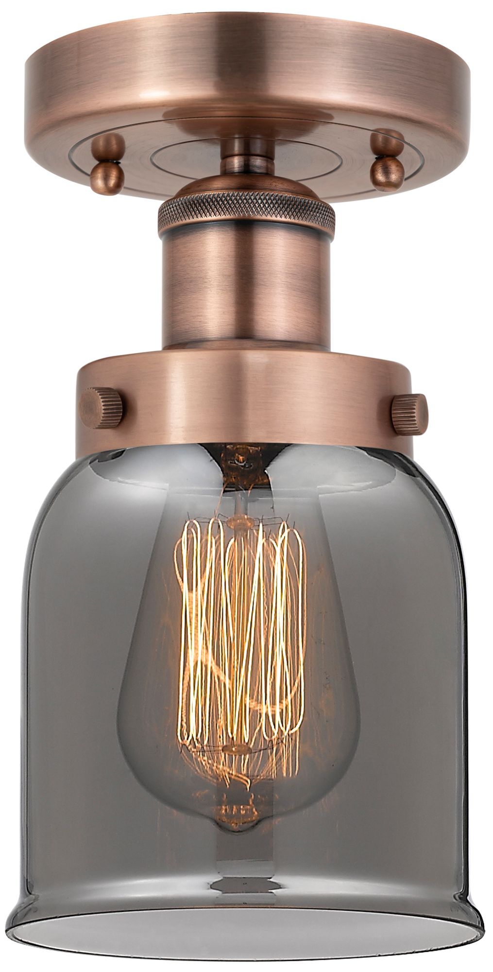 Bell 5" Wide Antique Copper Semi.Flush Mount With Plated Smoke Glass S