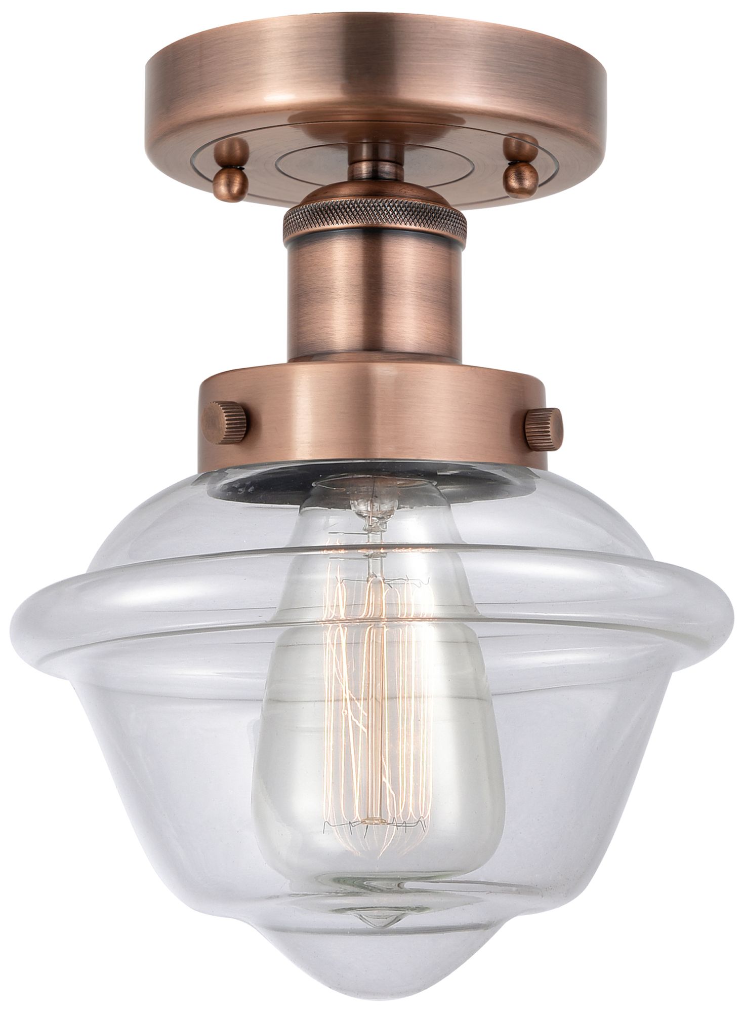 Oxford 6.5" Wide Antique Copper Semi.Flush Mount With Clear Glass Shad
