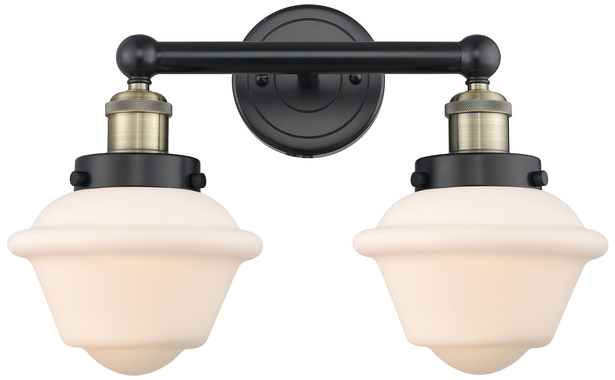 Oxford 15.5"W 2 Light Black Antique Brass Bath Light With White Shade