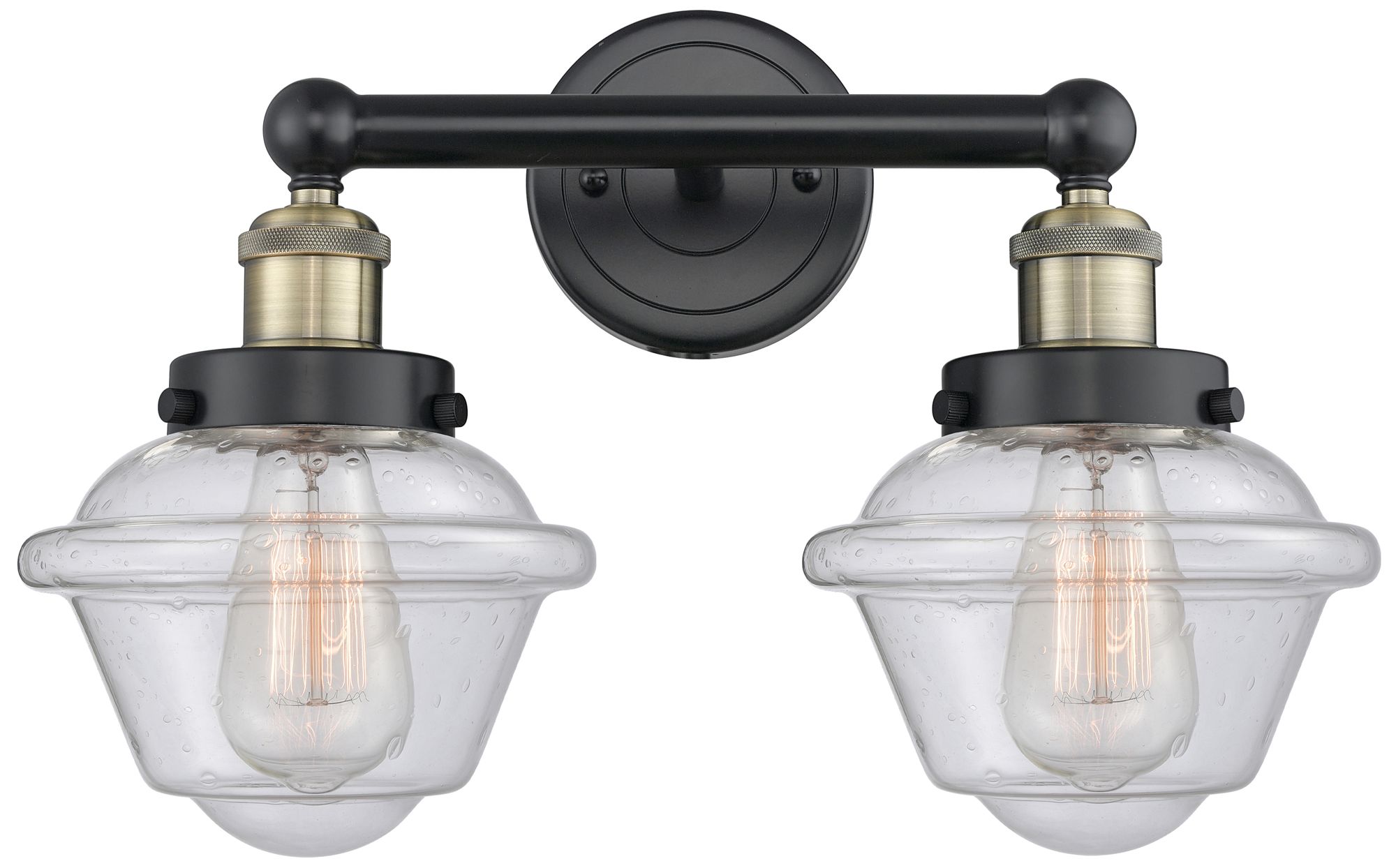Oxford 15.5"W 2 Light Black Antique Brass Bath Light With Seedy Shade