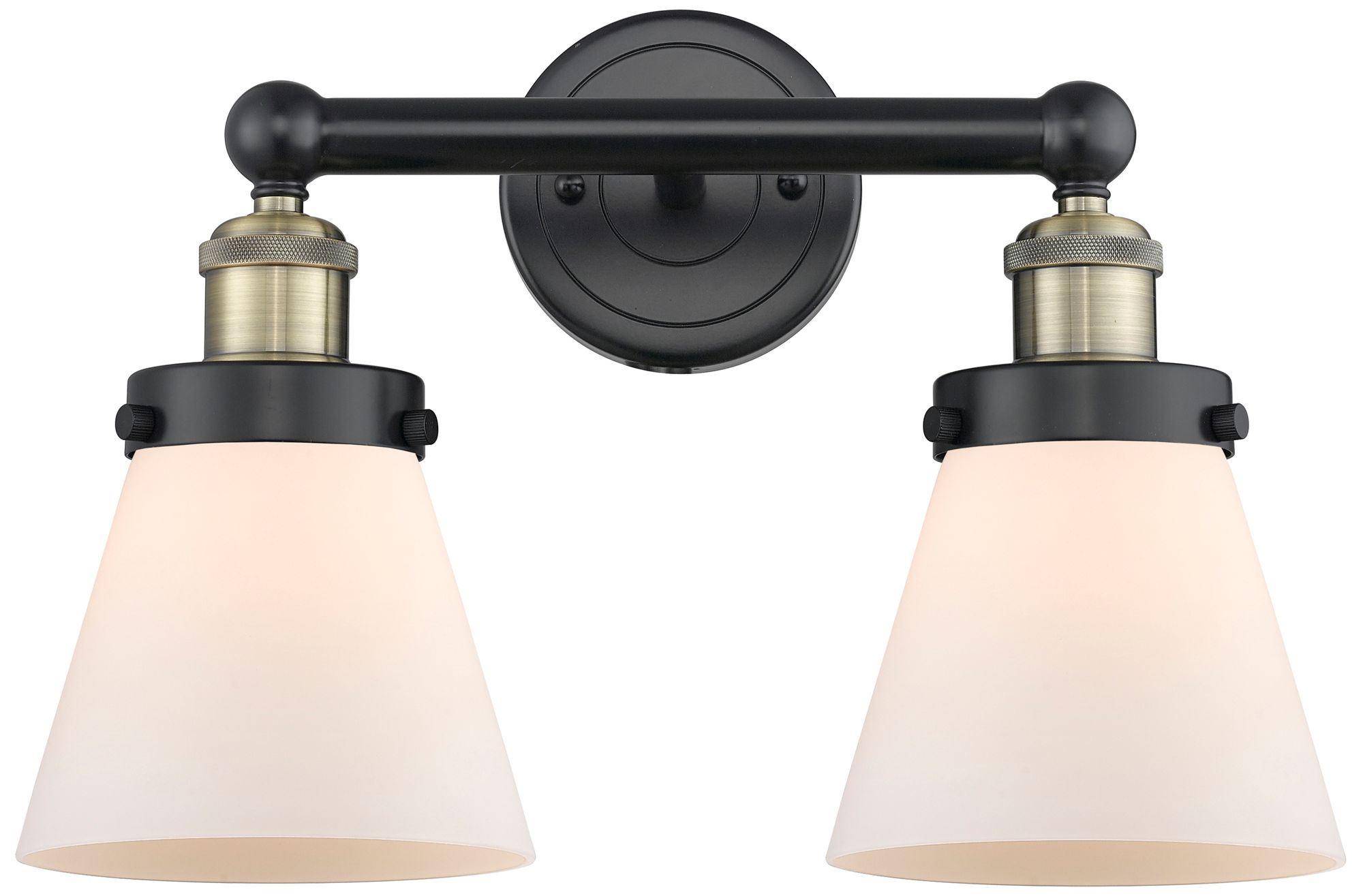 Edison Small Cone 15.5"W 2 Light Black Brass Bath Light With White Sha