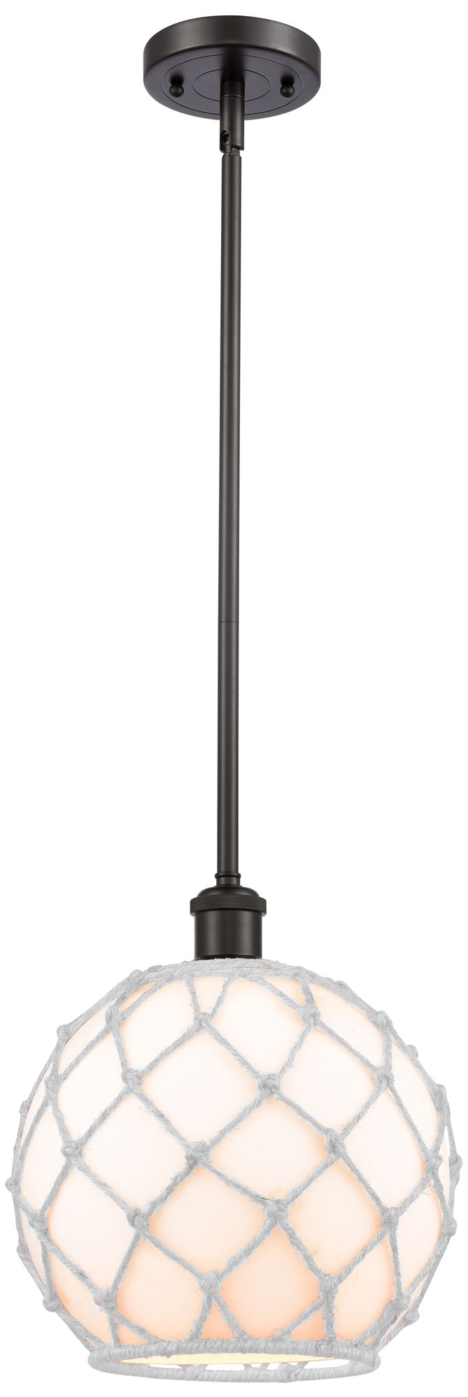 Farmhouse Rope 10"W Bronze Stem Hung Mini Pendant w/ White Rope Shade