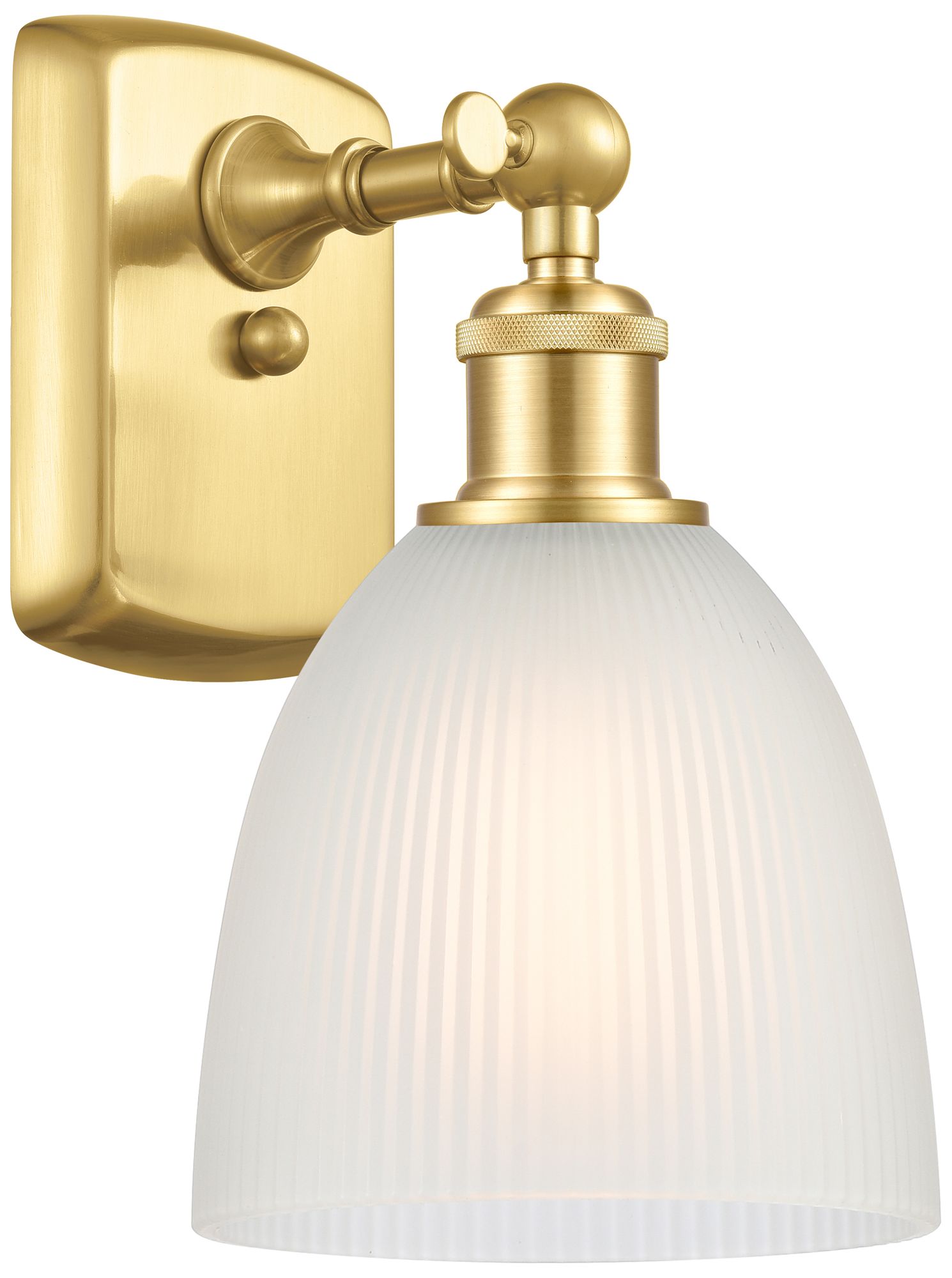 Castile 11" High Satin Gold Sconce w/ White Shade