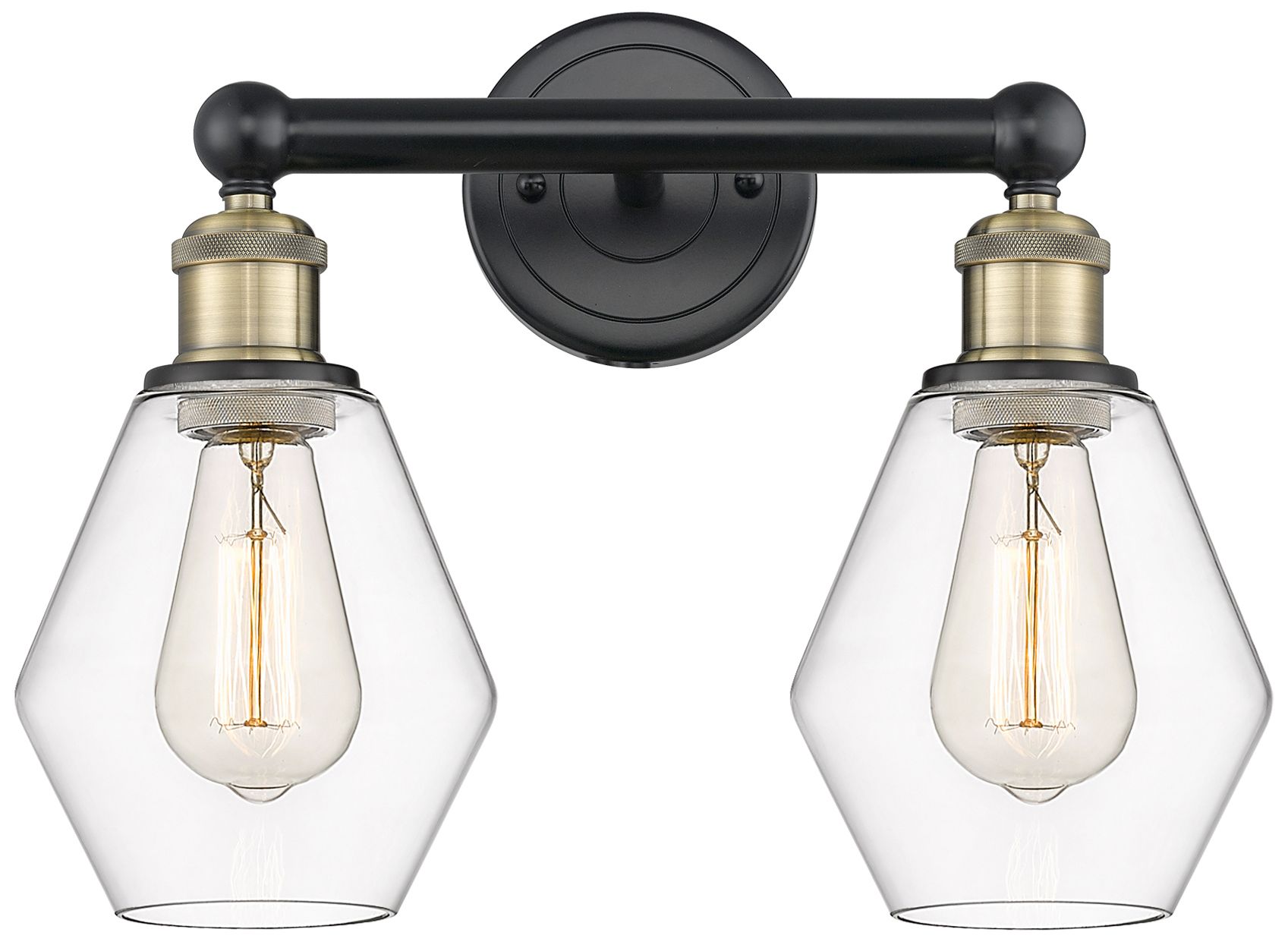 Cindyrella 15"W 2 Light Black Antique Brass Bath Light With Clear Shad