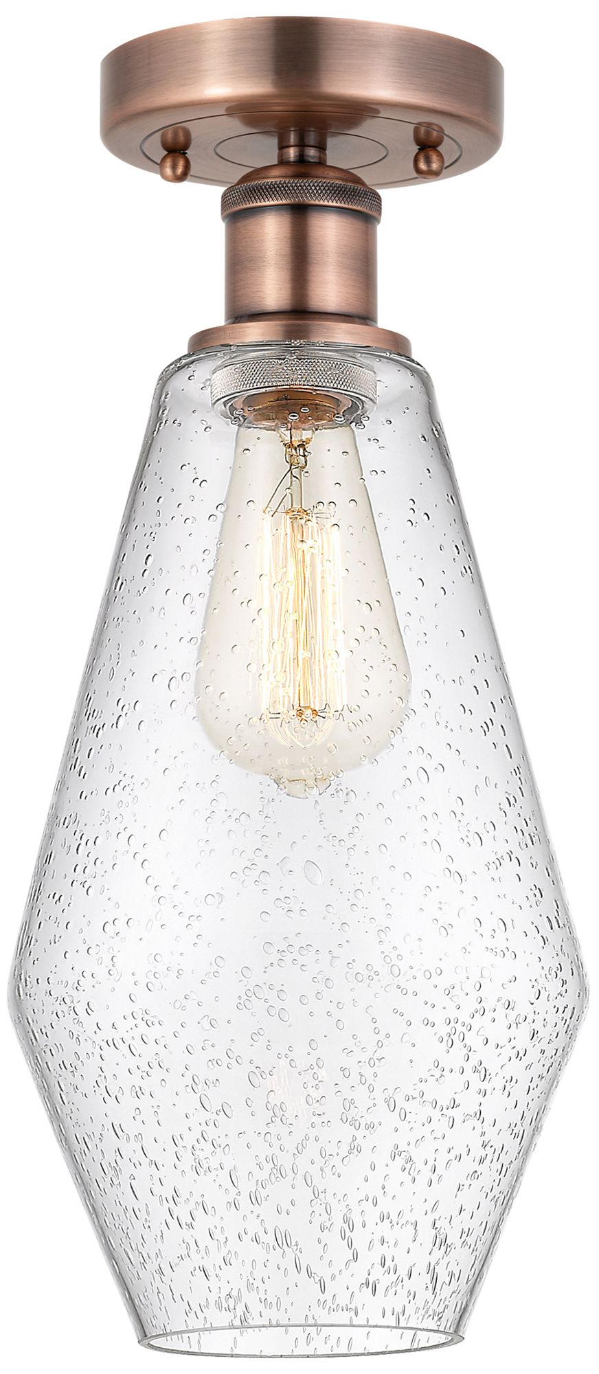 Cindyrella 7" Wide Antique Copper Semi.Flush Mount With Seedy Glass Sh
