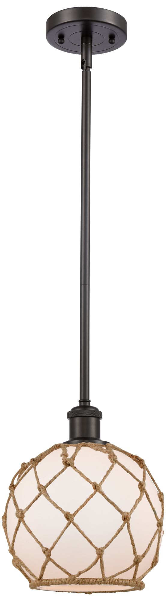 Farmhouse Rope 8"W Bronze Stem Mini Pendant w/ White and Brown Rope Sh