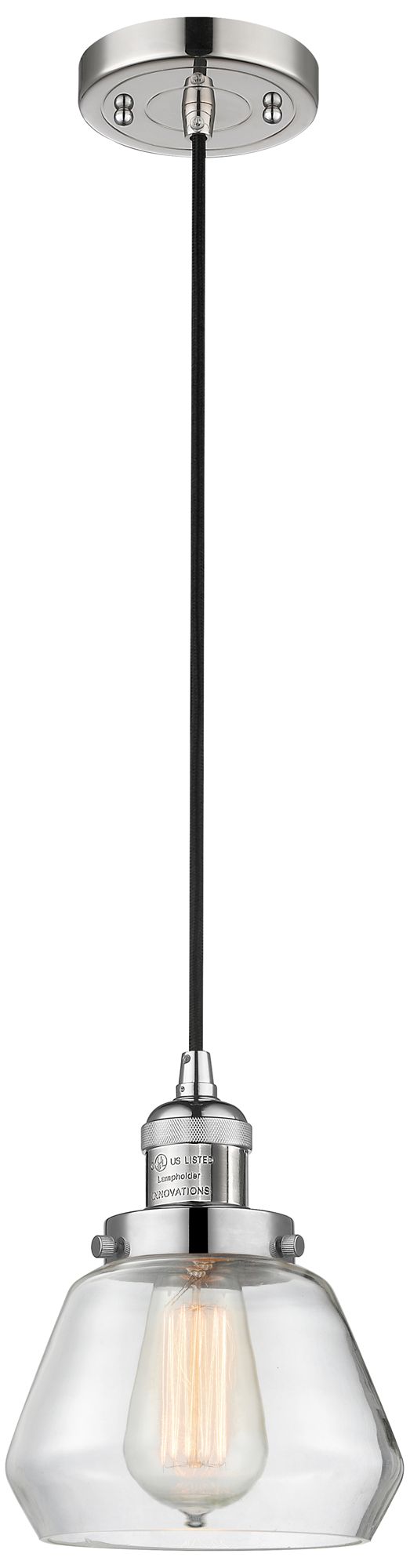Fulton 7" Polished Nickel Cord Hung Mini Pendant w/ Clear Shade