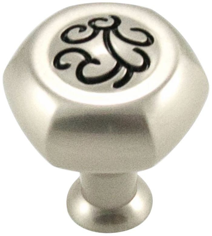 Palermo Satin Nickel with Black 1 1/4"W Hexagon Cabinet Knob