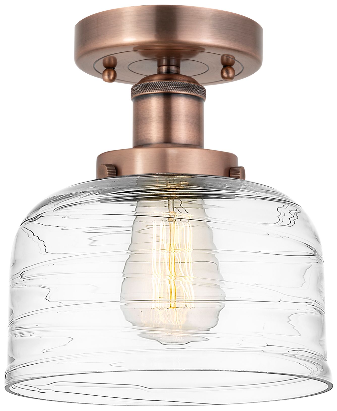 Bell 7.75"W Antique Copper Semi.Flush Mount w/ Clear Deco Swirl Glass