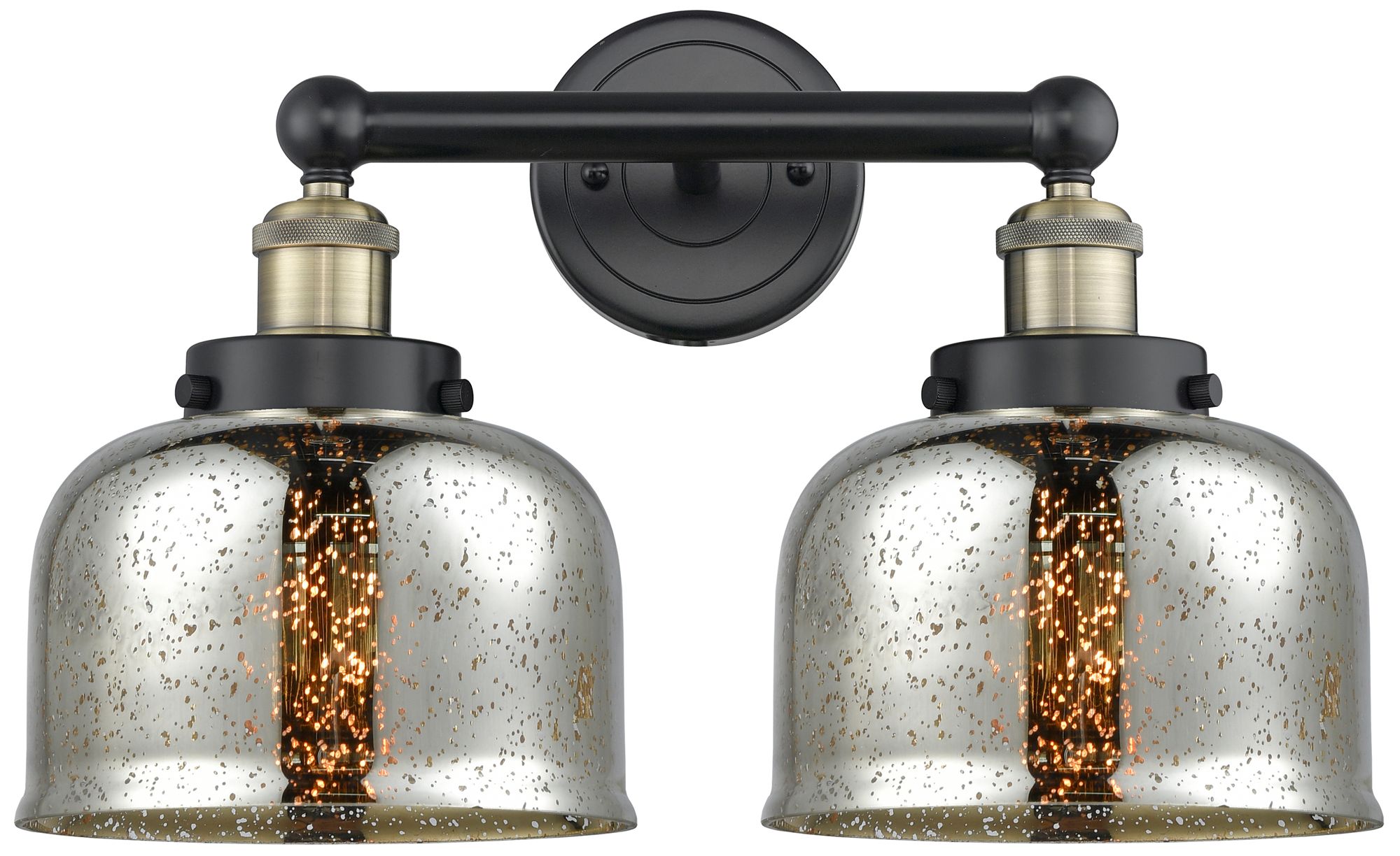 Edison Bell 15.5"W 2 Light Black Brass Bath Light With Mercury Shade