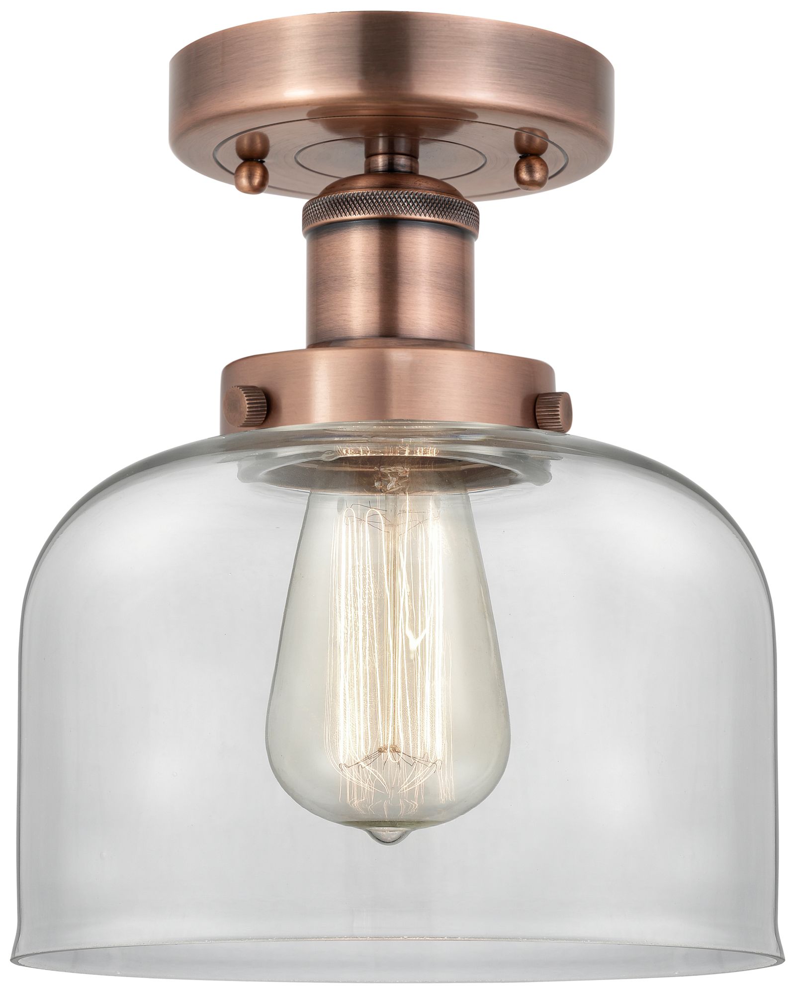 Bell 7.75" Wide Antique Copper Semi.Flush Mount With Clear Glass Shade