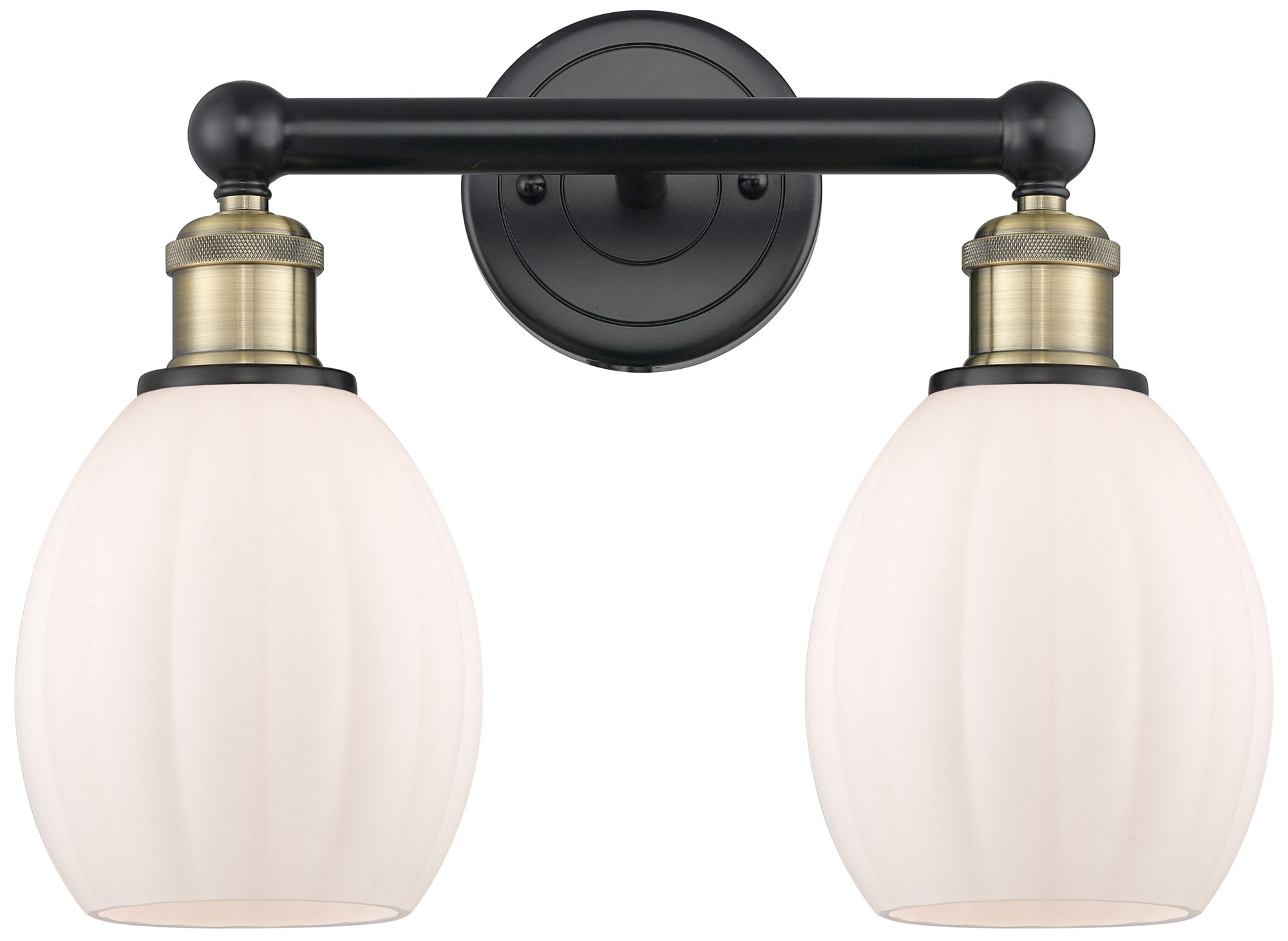 Eaton 14.5"W 2 Light Black Antique Brass Bath Vanity Light With White