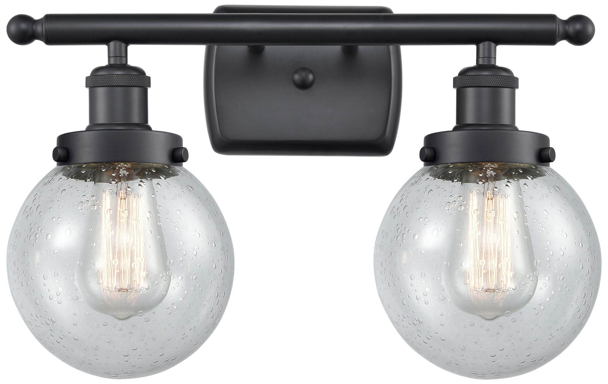 Ballston Urban Beacon 16"W 2 Light Matte Black Bath Light w/ Seedy Sha