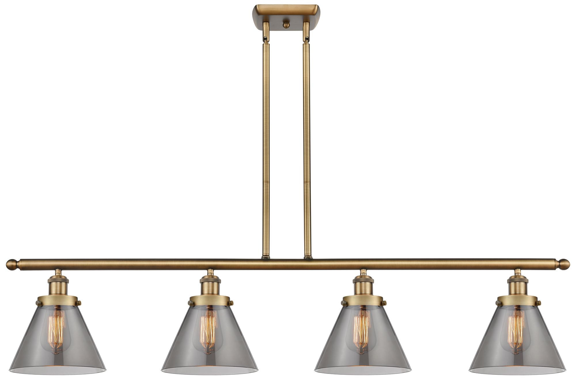 Cone 48" Wide 4 Light Brushed Brass Island Light w/ Plated Smoke Shade