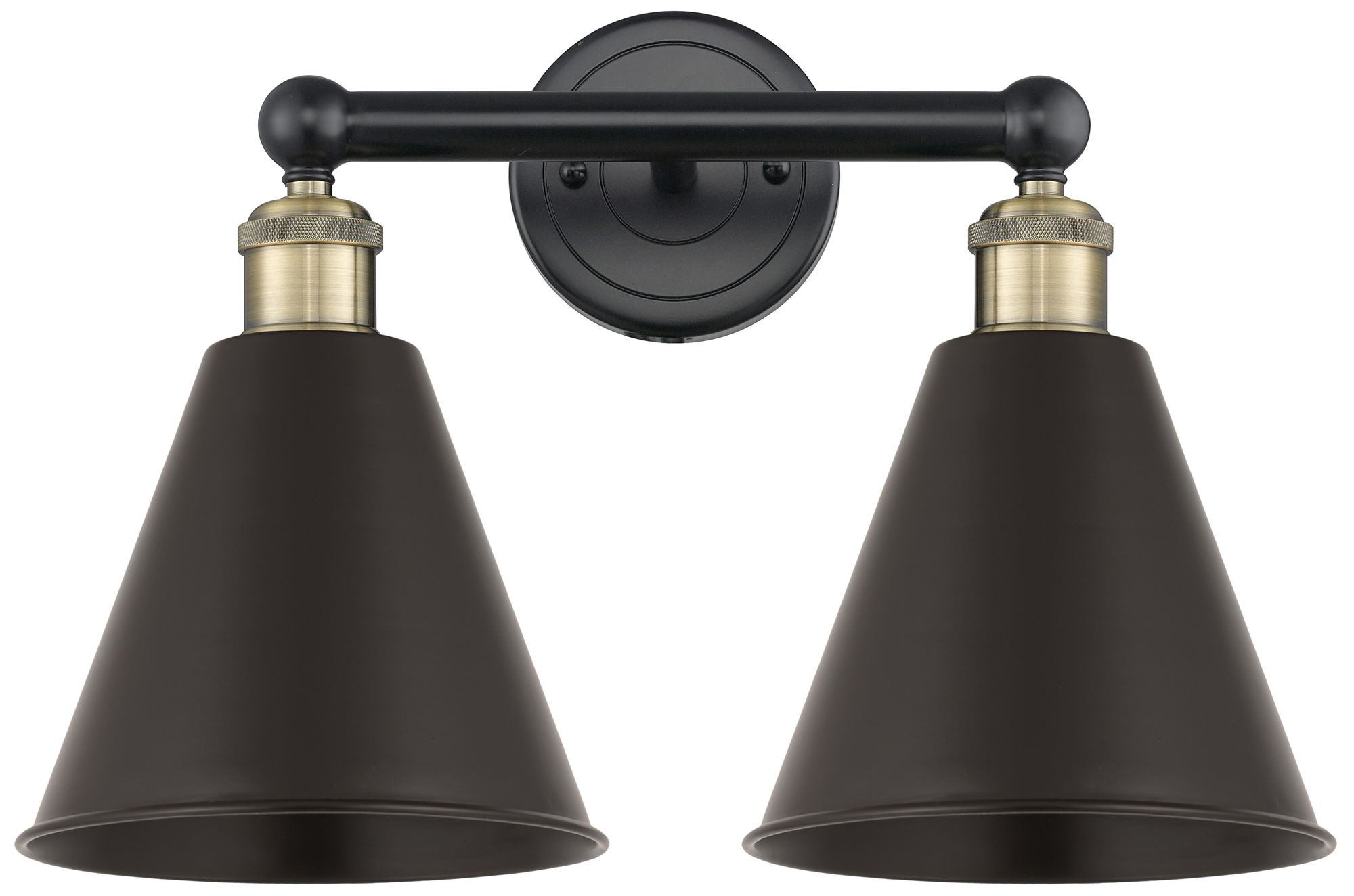 Ballston Cone 17"W 2 Light Black Antique Brass Bath Light With Black S