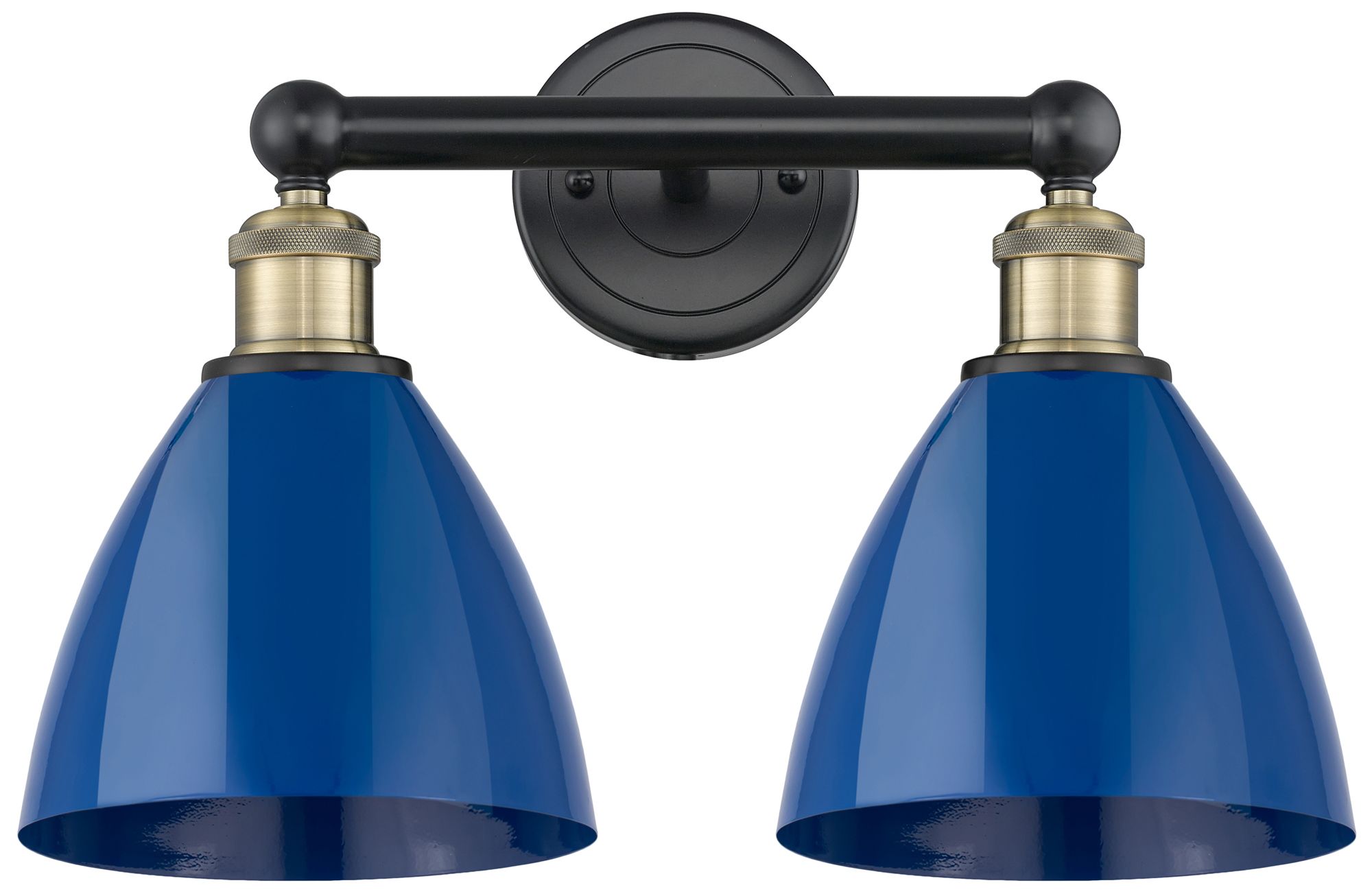 Plymouth Dome 16.5"W 2 Light Black Antique Brass Bath Light With Blue