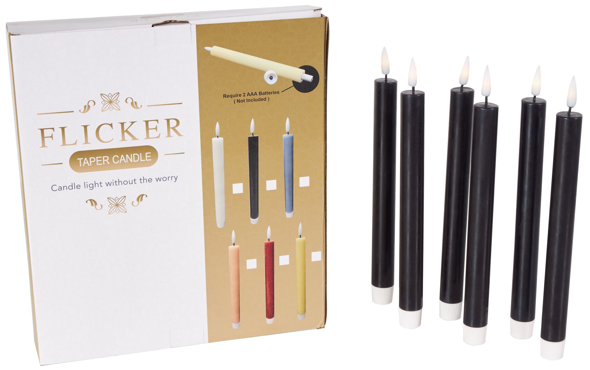 Black Wax Modern Flameless Candle, S/6 10"H