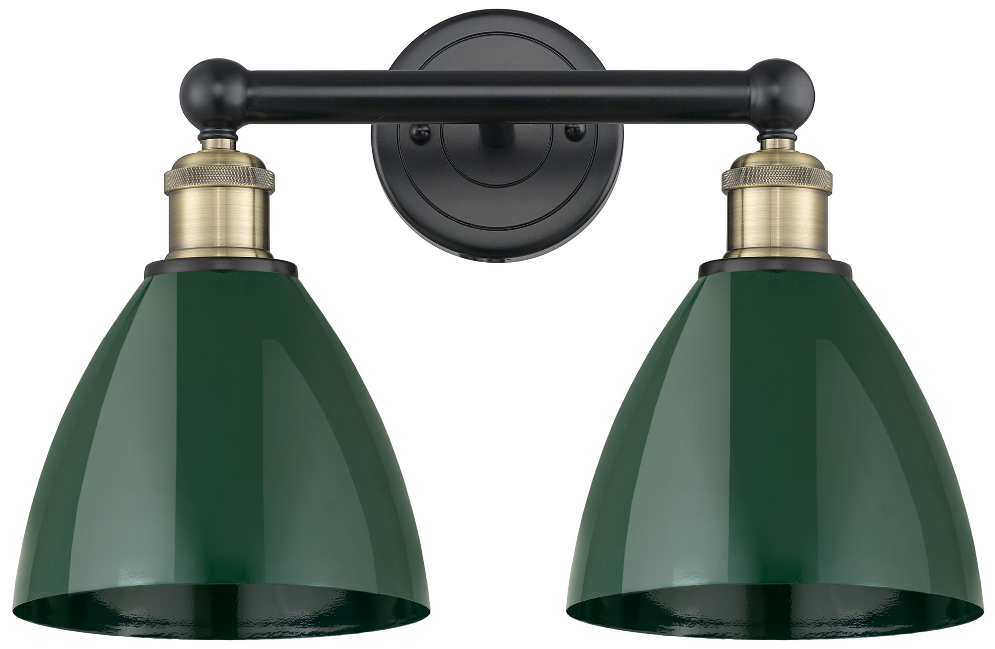 Plymouth Dome 16.5"W 2 Light Black Brass Bath Light With Green Shade