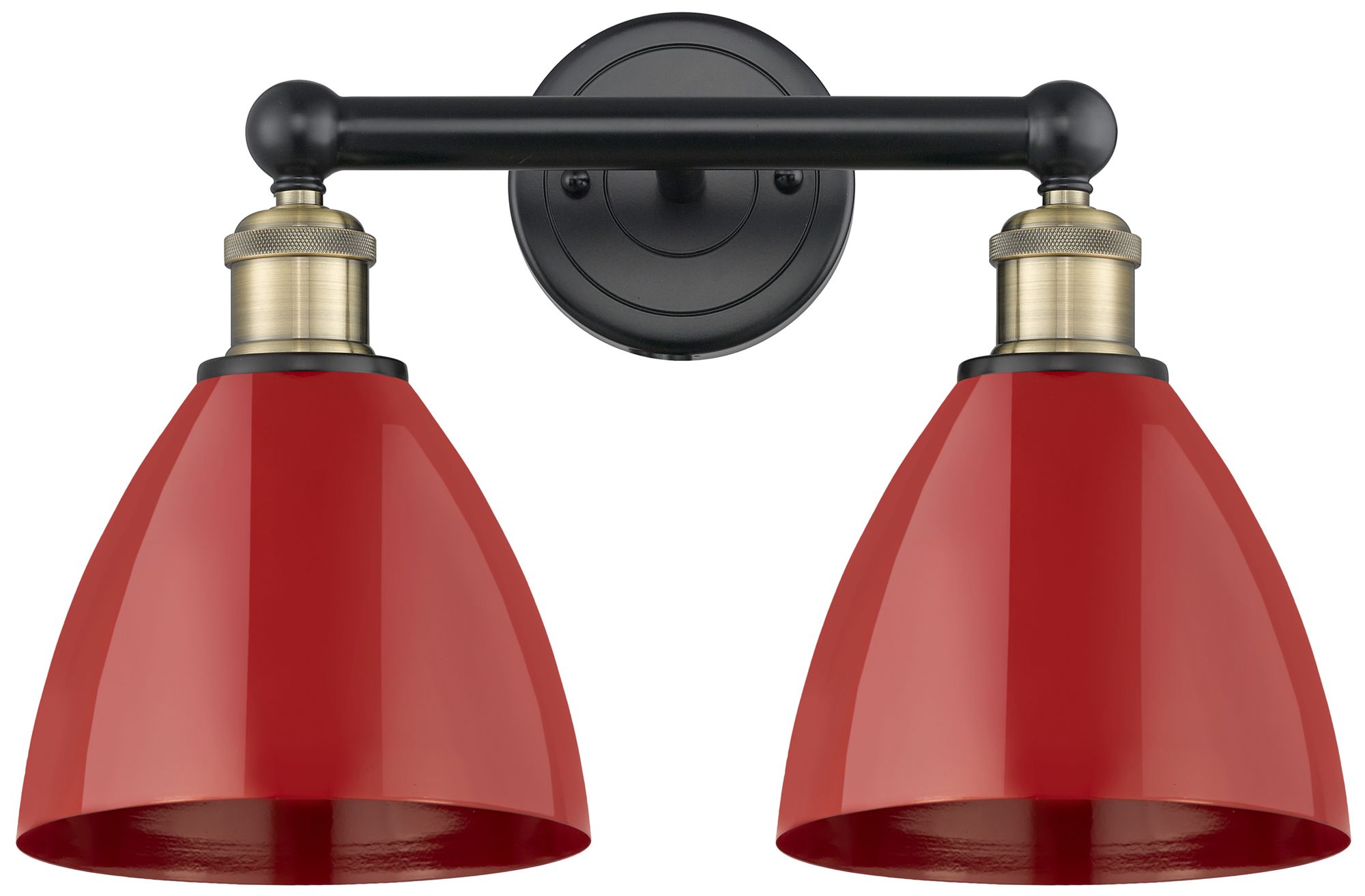 Plymouth Dome 16.5"W 2 Light Black Antique Brass Bath Light With Red S