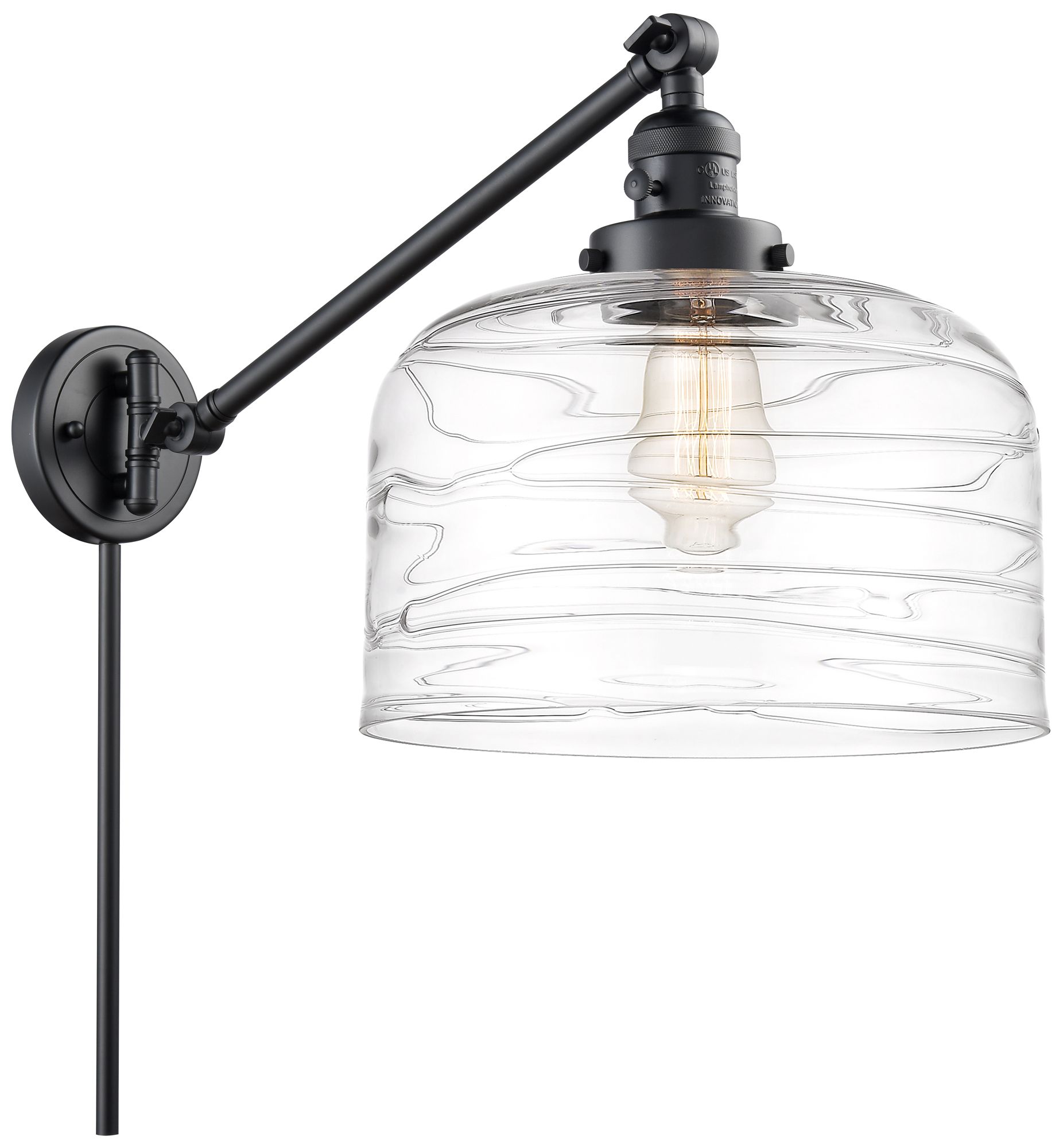 Bell 12" Matte Black LED Swing Arm With Clear Deco Swirl Shade