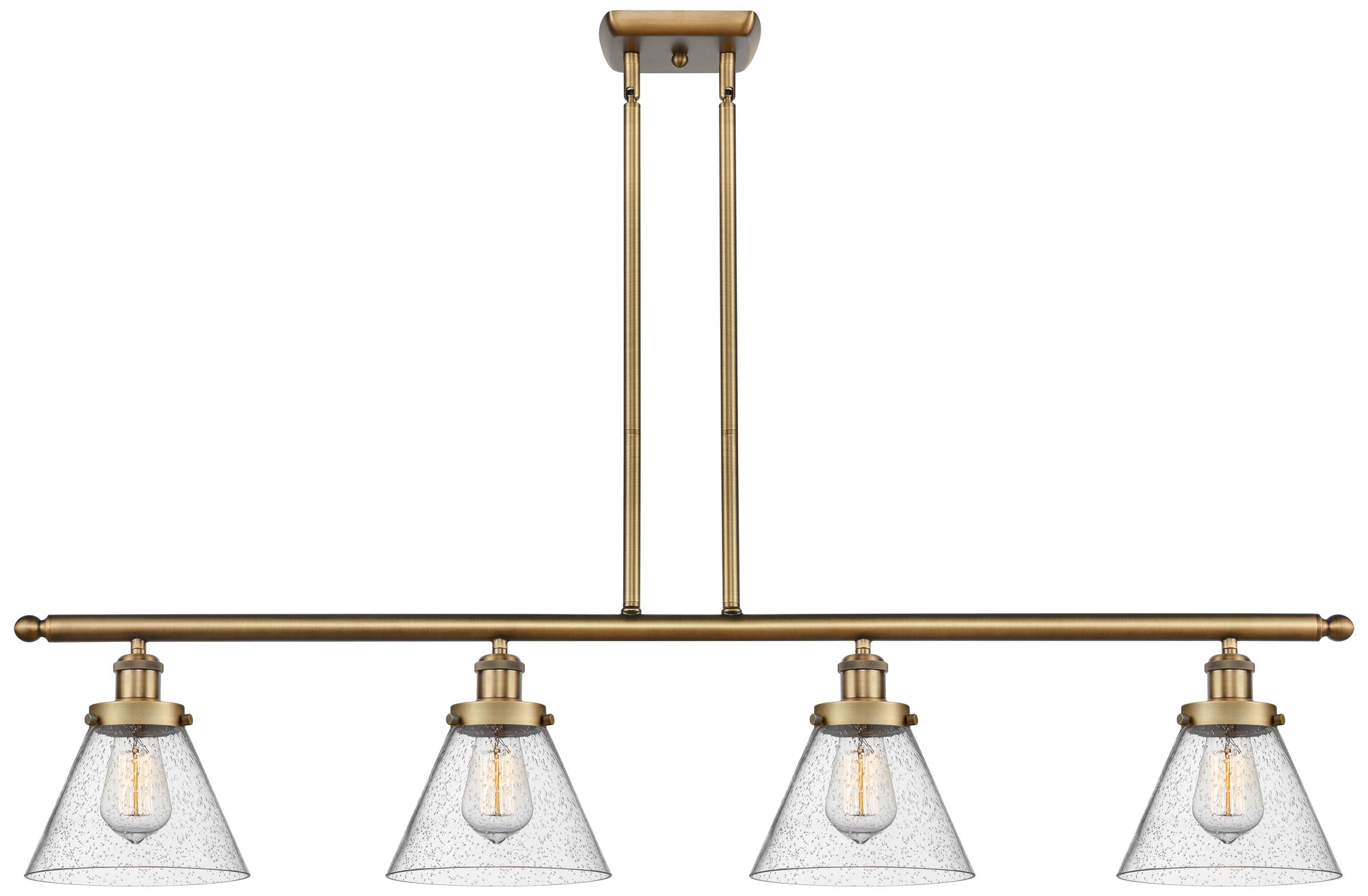 Cone 48" Wide 4 Light Brushed Brass Island Light w/ Seedy Shade