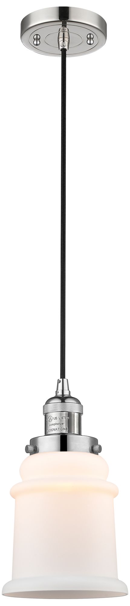 Canton 6" Polished Nickel Cord Hung Mini Pendant w/ Matte White Shade