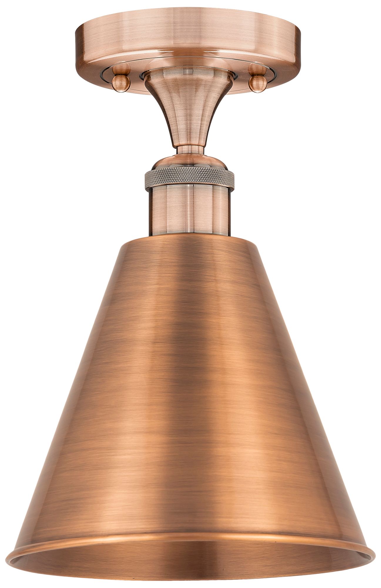Ballston Cone 8" Wide Antique Copper Semi.Flush Mount With Copper Shad