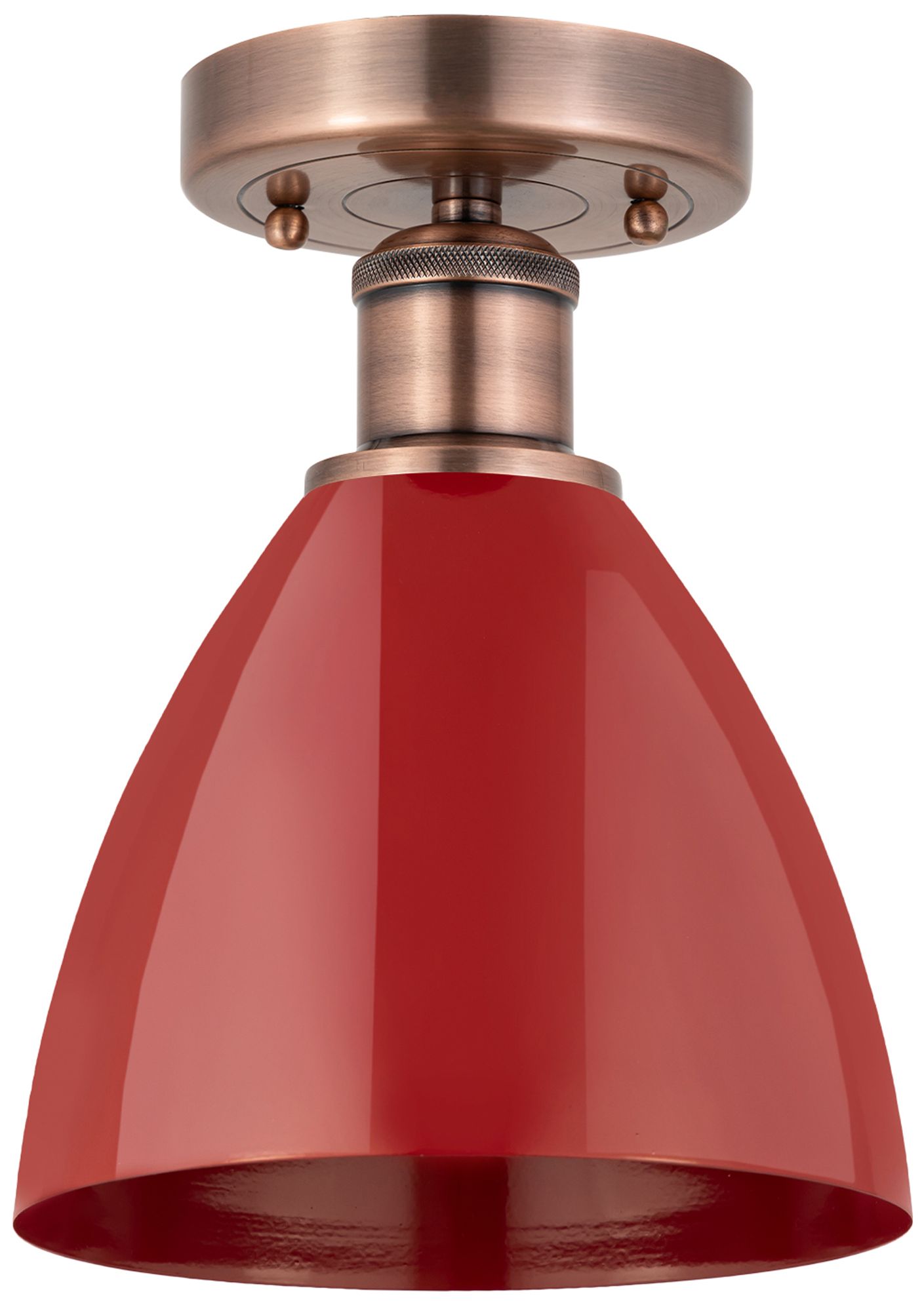 Plymouth Dome 7.5" Wide Antique Copper Semi.Flush Mount With Red Shade