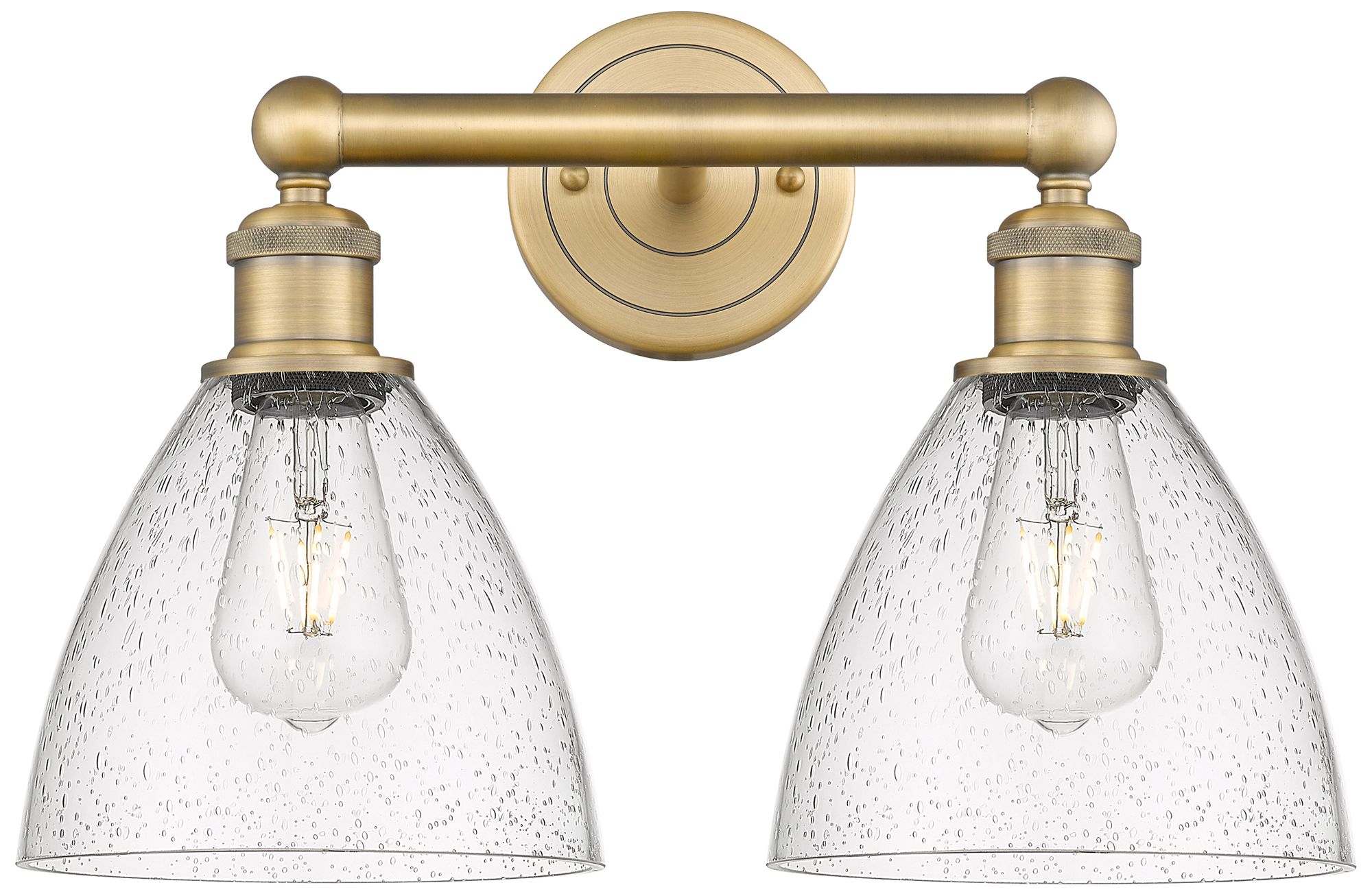 Bristol Glass 16.5"W 2 Light Brushed Brass Bath Light With Seedy Shade