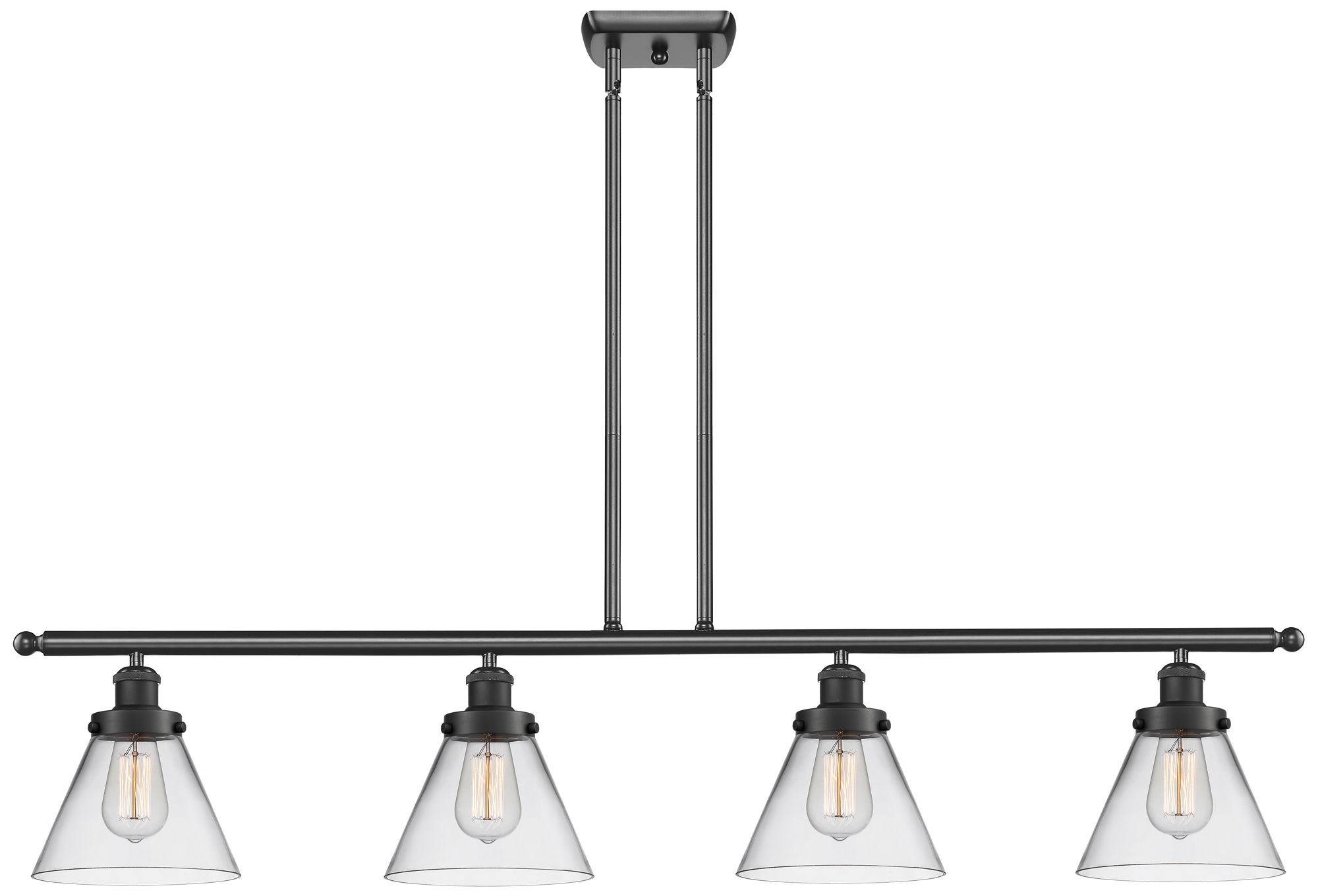 Cone 48" Wide 4 Light Matte Black Island Light w/ Clear Shade