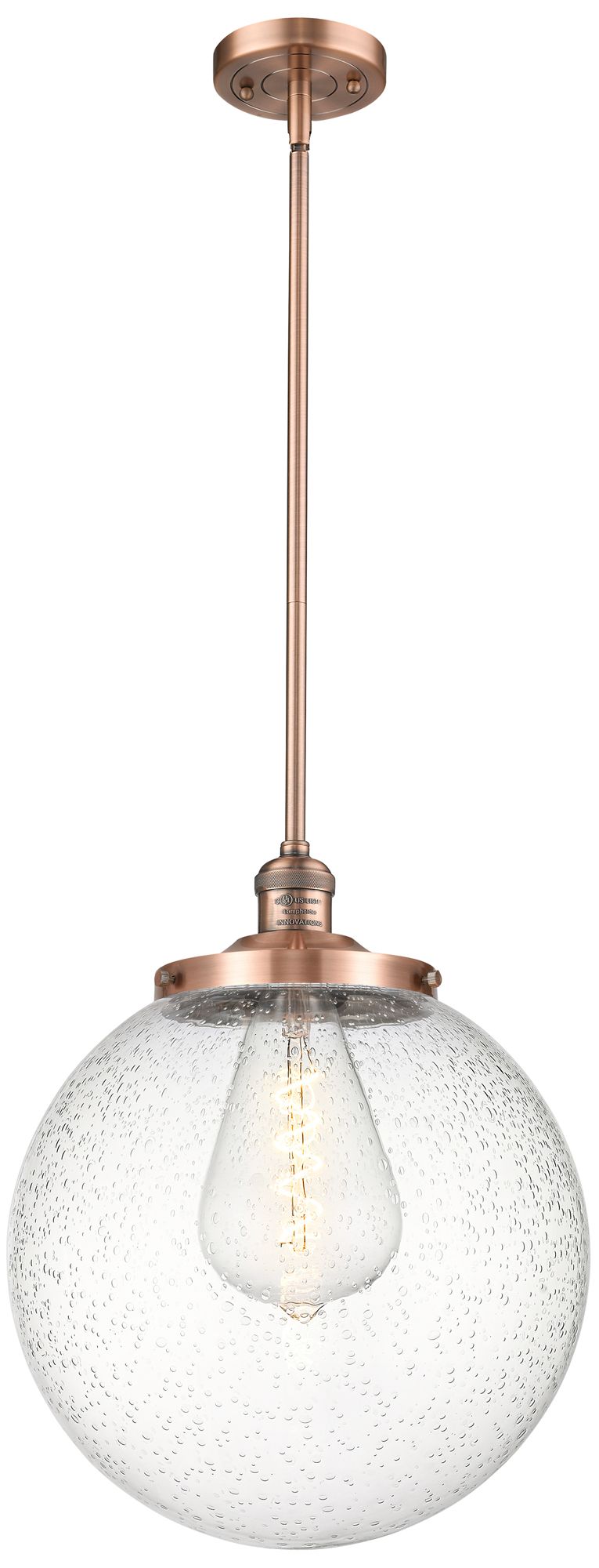 Beacon 14" Wide Antique Copper Pendant With Seedy Shade