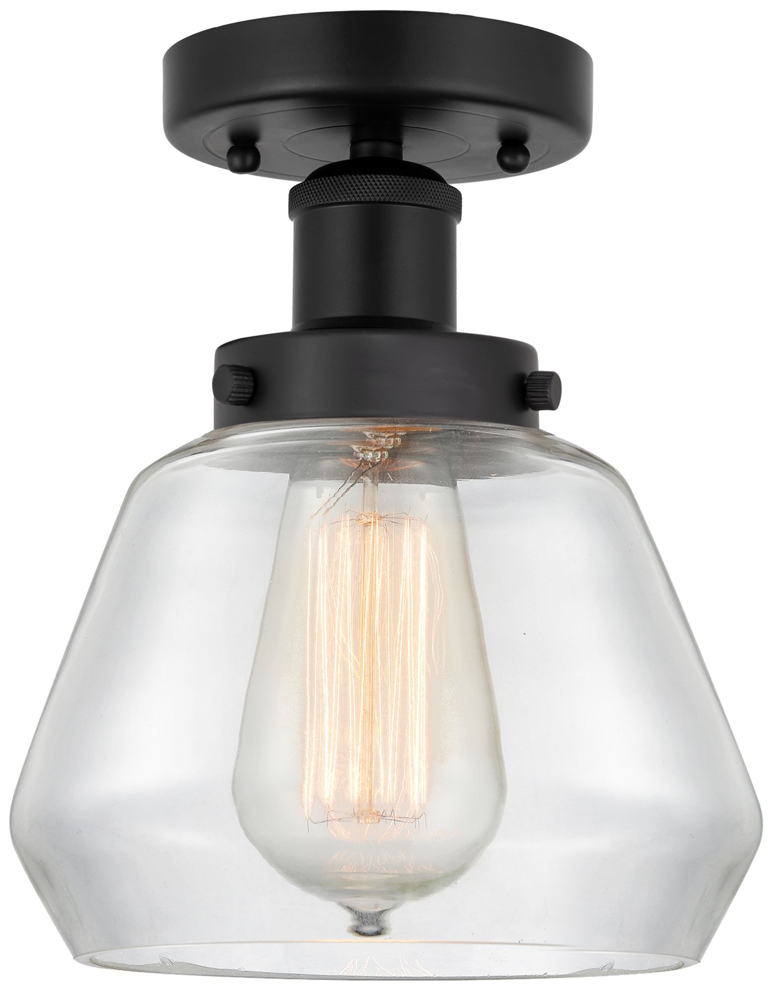Edison Fulton 7" Matte Black Semi Flush Mount w/ Clear Shade