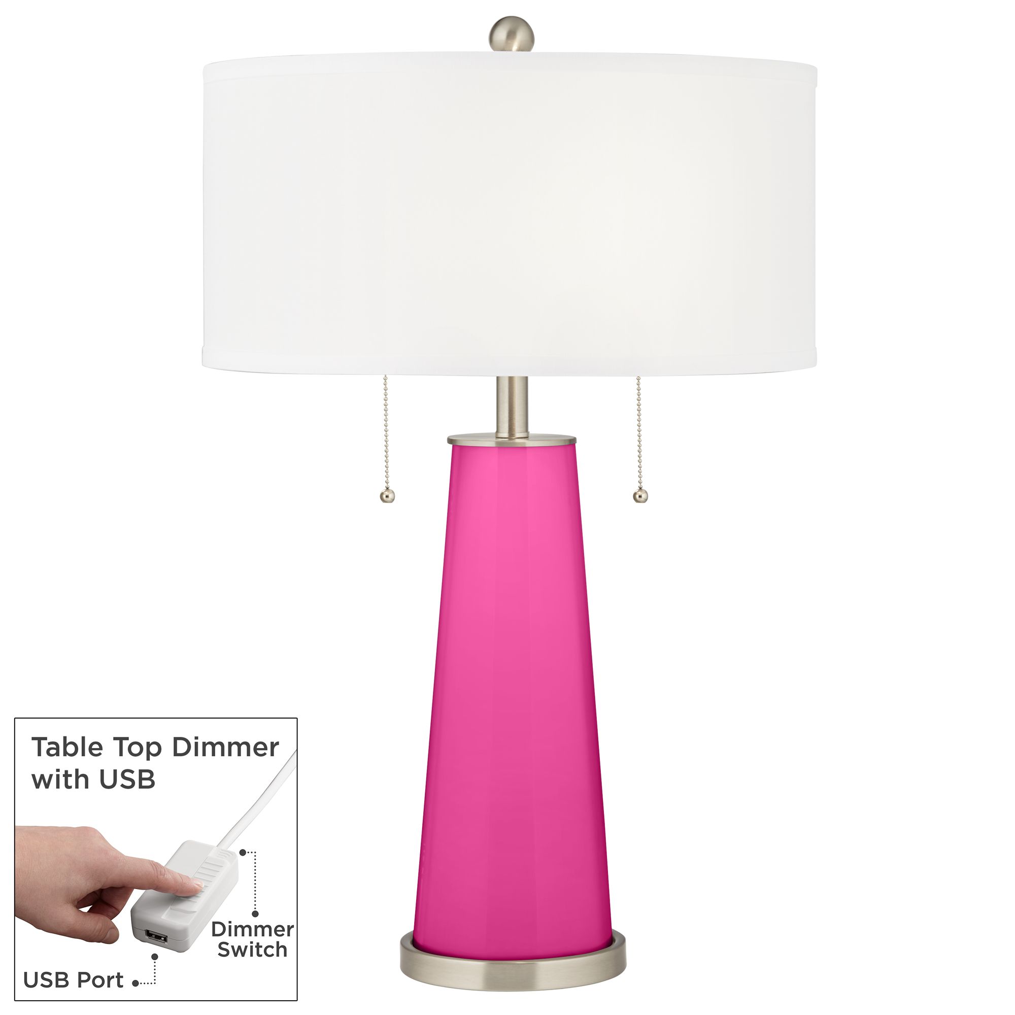Color Plus Peggy 29 3/4" Fuchsia Pink Glass Table Lamp with USB Dimmer