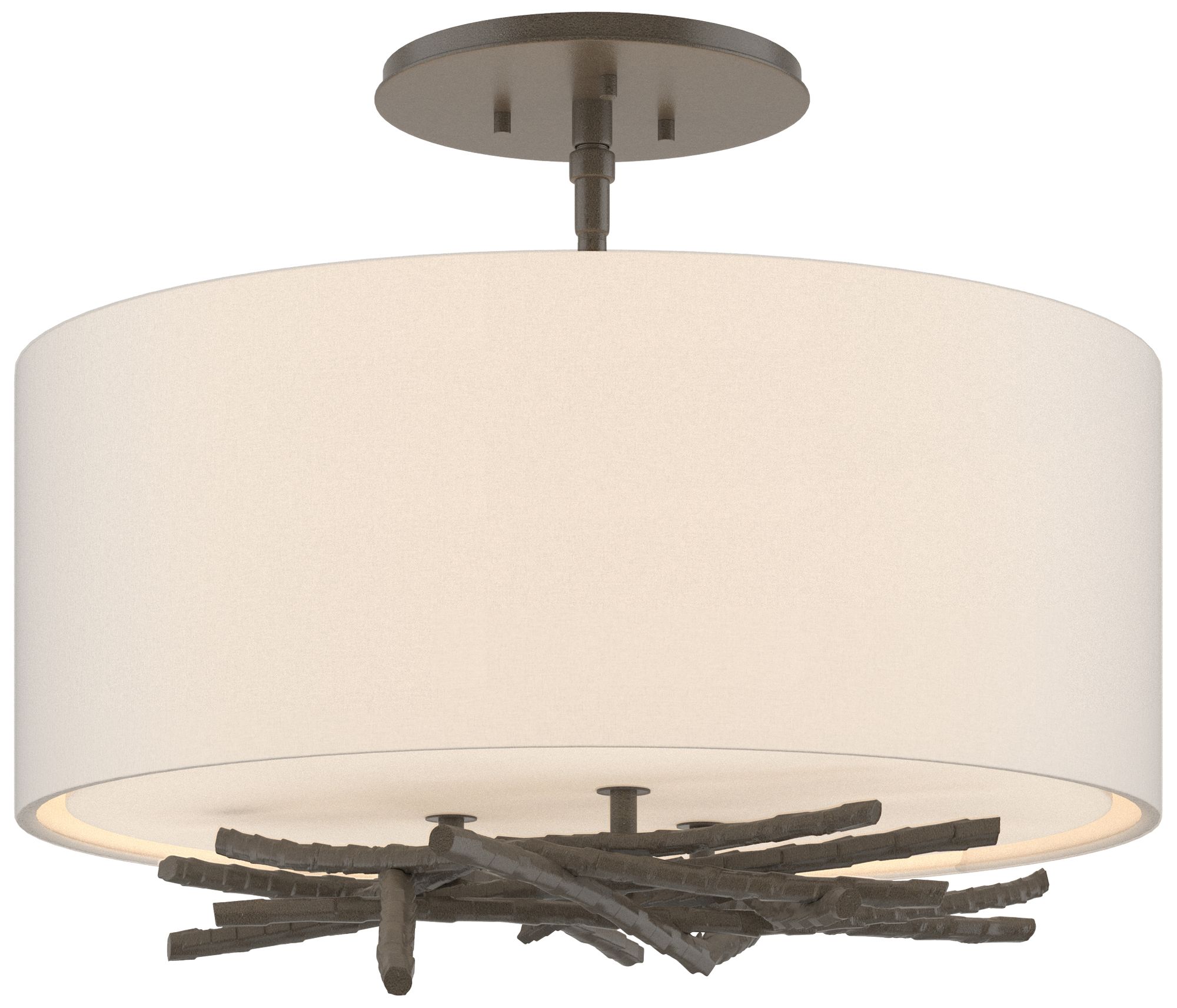 Brindille 15" Wide Dark Smoke Semi-Flush With Flax Shade