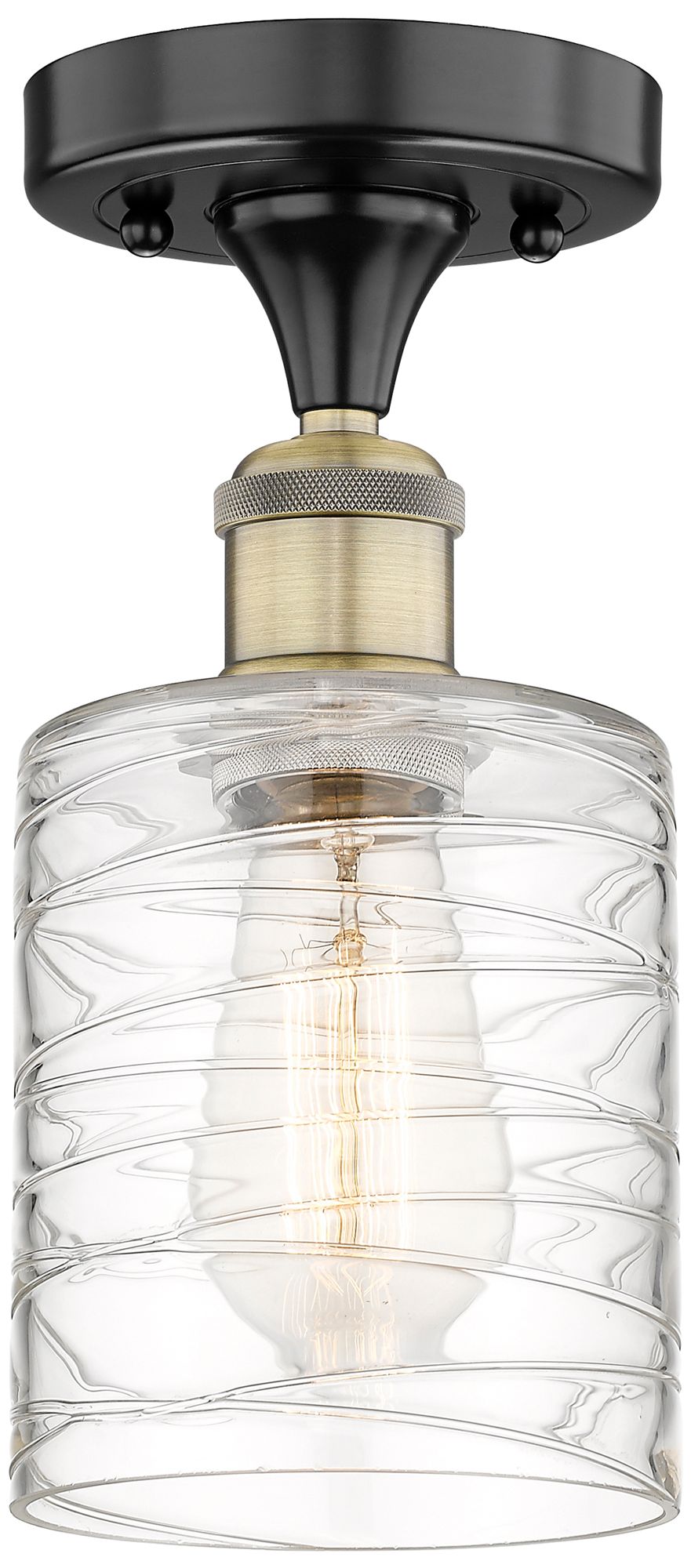 Cobbleskill 5"W Black Antique Brass Semi.Flush Mount w/ Deco Swirl Sha