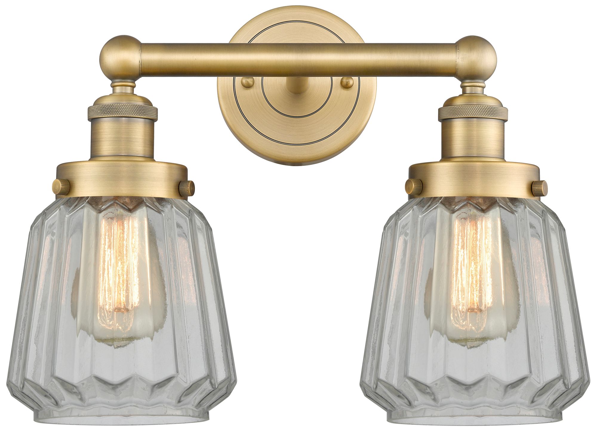 Edison Chatham 15.5"W 2 Light Brushed Brass Bath Light With White Shad
